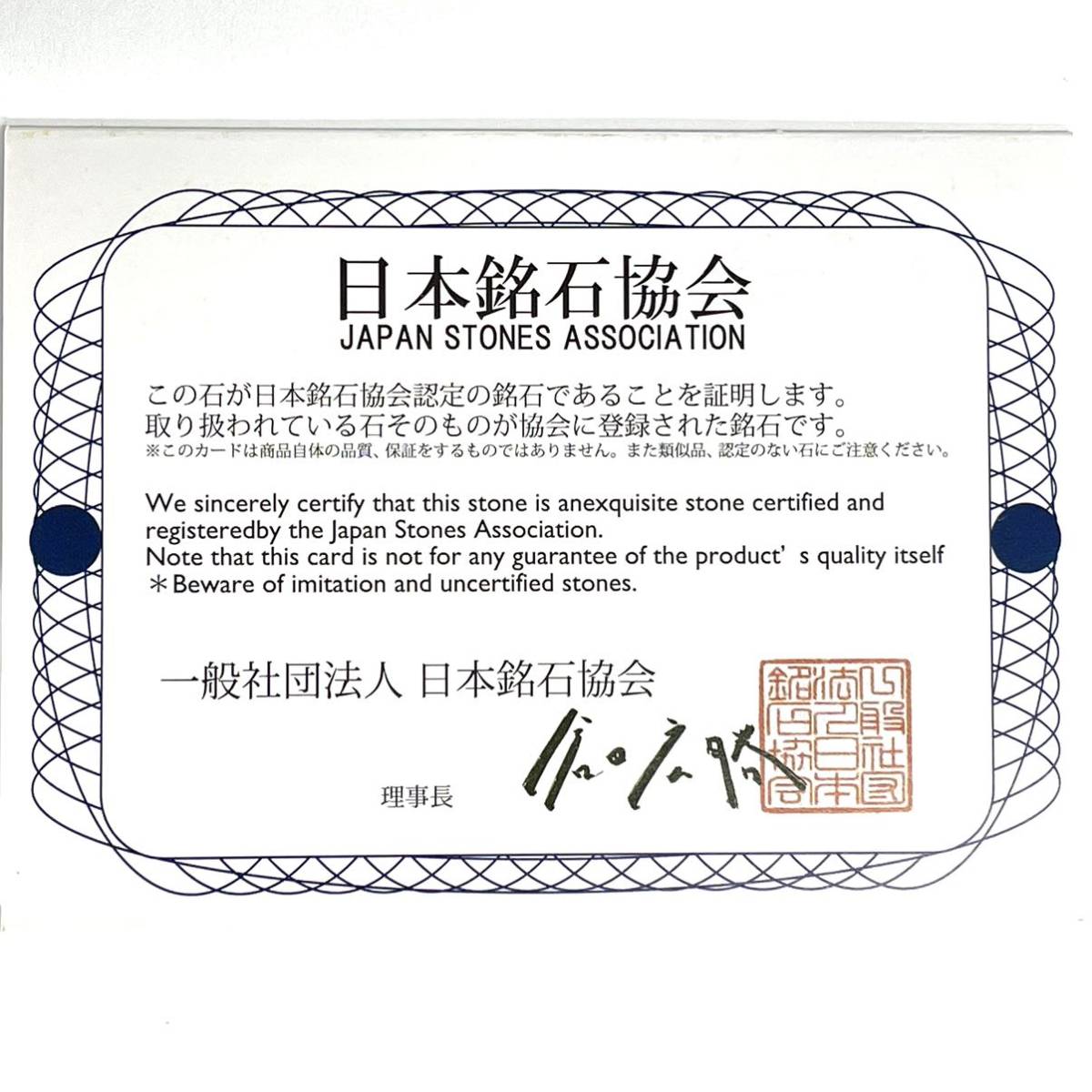 日本鉱石協会の証明、ストーンカードをお付けします。