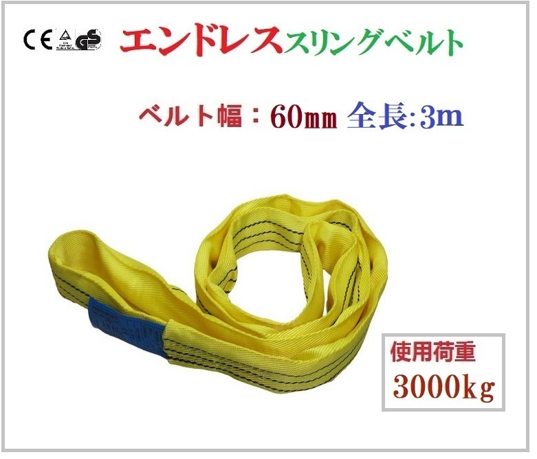 エンドレススリングベルト 耐荷重3000kg 幅60mm 長さ3m ラウンドスリング ソフトスリング サークルスリング クレーンスリング繊維ロープ
