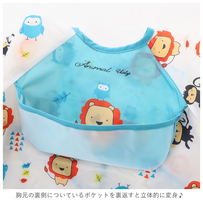 | 商品説明 | ・お子さまのお食事時に♪こぼしてもお洋服を汚さない「お食事エプロン」 ・水に強いポリエステル素材。水分の多い素材をこぼしてもサッとふき取るだけ♪汚れがシミになりにくくお手入れも簡単♪ ・後ろ開きのスモックタイプ。お腹から袖口まで、すっぽりと広範囲をカバーすることが可能。 ・胸元の裏側についているポケットを裏返すと立体的に変身♪うっかりこぼした食べ物もキャッチ♪ ・着脱は首の後ろ側の紐を結ぶだけ。お子さまの着せ替えをサポートするママもラクラク♪ ・袖口はゴム入りだから、袖が邪魔にならず動きやすい♪ |