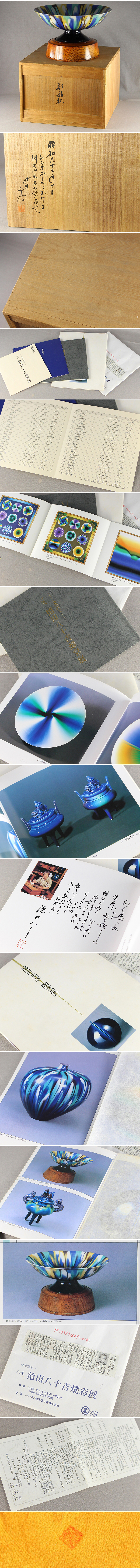当方のオークションを御覧頂き誠にありがとうございます。 説明文を最後までお読みの上御入札お願い致します。 【恭】本物保証 九谷焼 人間国宝 三代 徳田八十吉(正彦) 彩釉 杯 個展出品作 共箱 共布 略歴書 カタログ付き