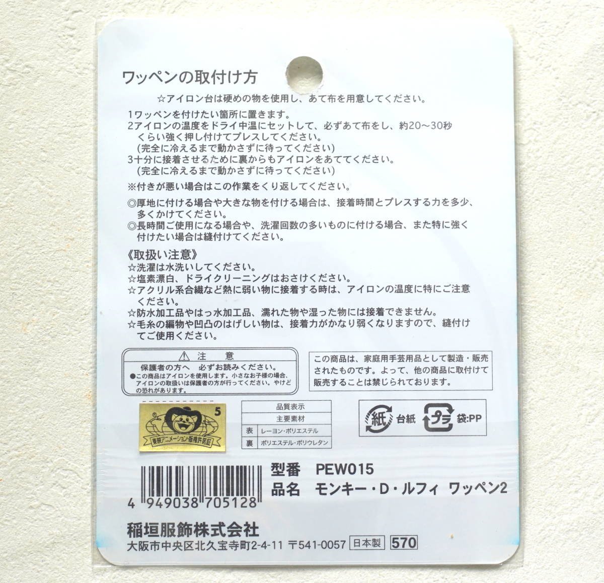 未使用 ワンピース ルフィ ワッペン アップリケ ONE PIECE モンキー・D・ルフィ アイロン接着