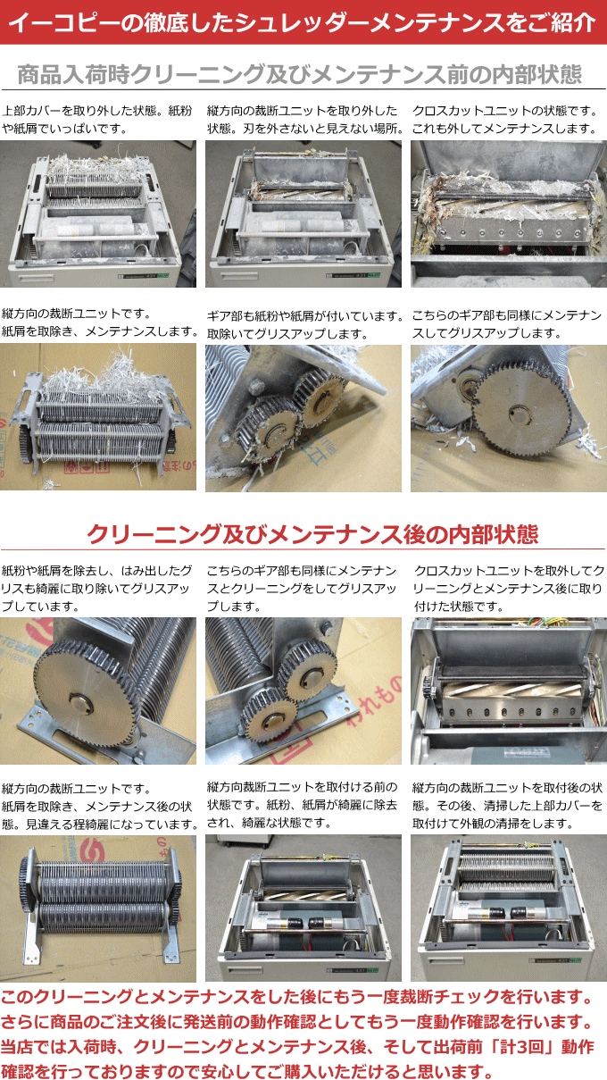 | ●シュレッダーメーカーの老舗明光商会のシュレッダーです。 ●A3用紙もそのまま裁断。家庭用とは比べ物にならないパワフルシュレッダー。 ●内部清掃済み!紙片や紙粉を綺麗に掃除してあります! |