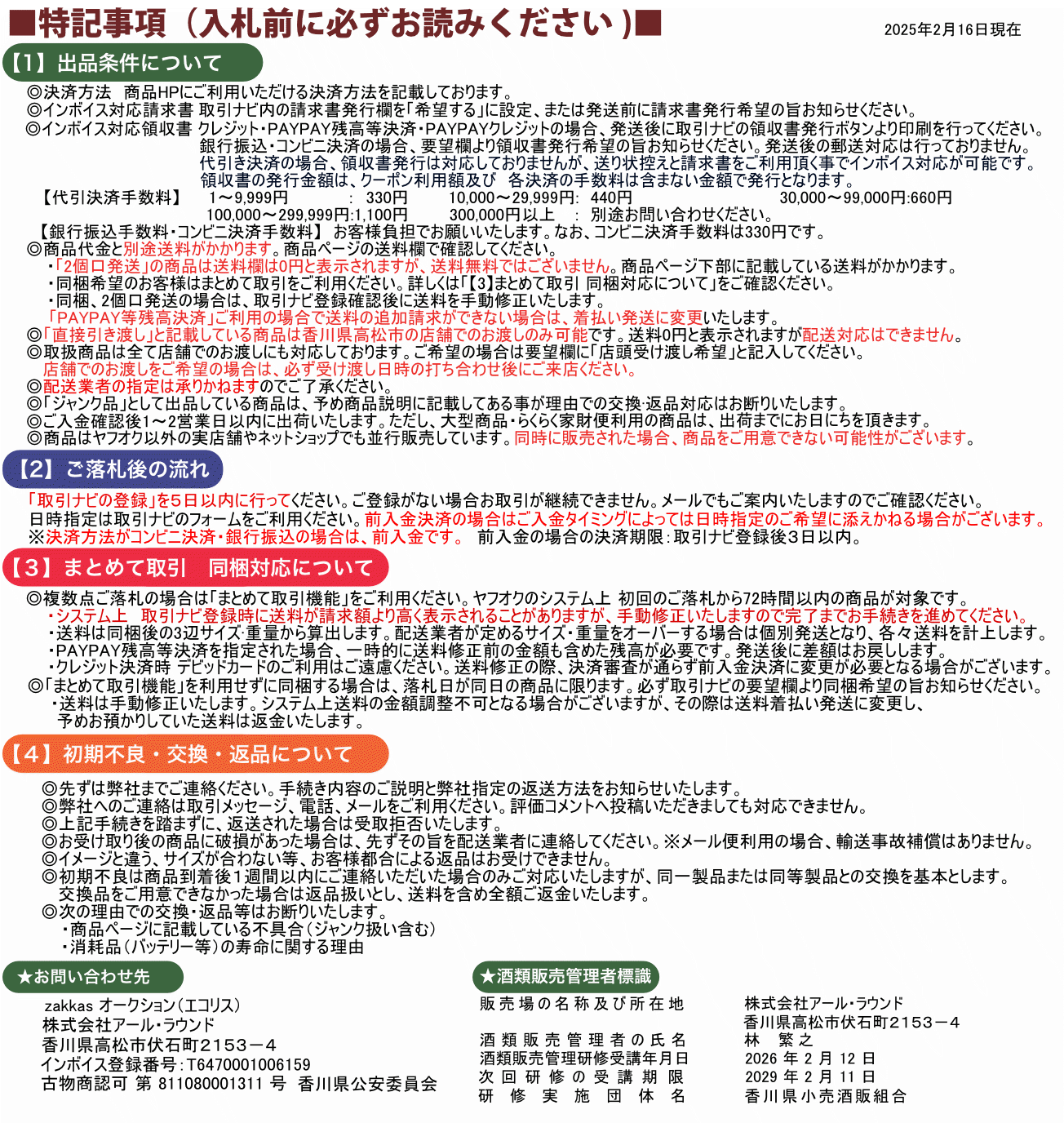 Ⅲ.一旦成功中标,您必须全额支付该拍品(成交价+消费税+银行转账费+日本邮费+代购费)。