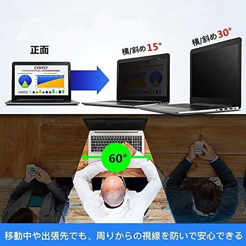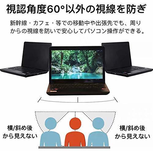 新幹線・カフェ・飛行機等での移動中や出張先でも、画面の正面を中心に70°(左右35°)より外の角度からは画面がまっ黒に見えるので、周りからの視線を防いで安心してパソコン操作ができます。