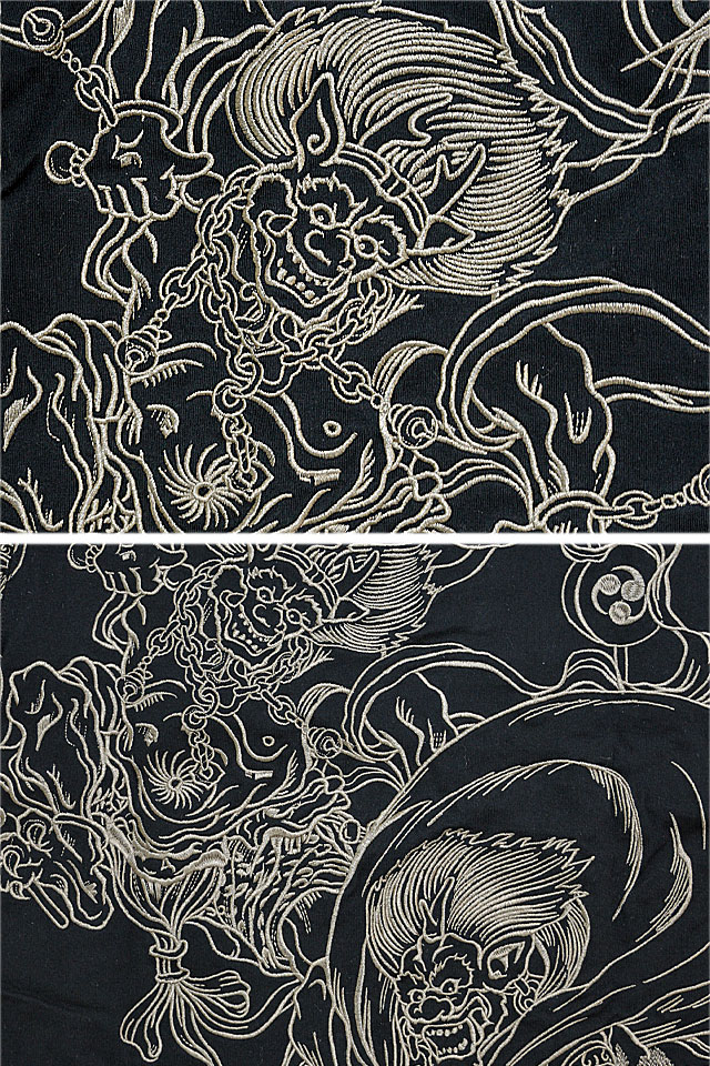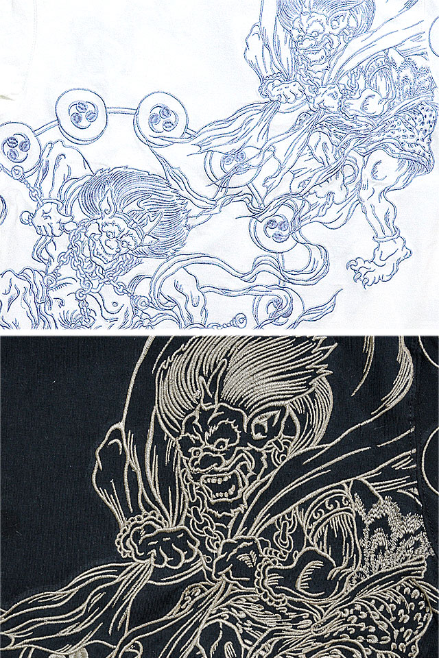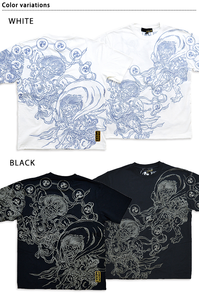 絡繰魂さんから「風神雷神乱れ半袖Tシャツ(222004)」のご紹介です。 モチーフの主役に採用されたのは、根強い人気を誇る「風神雷神」柄。 ボディーには、綿100%のさらりとしたTシャツ生地を採用。 | |||||||||||||||||||||||||