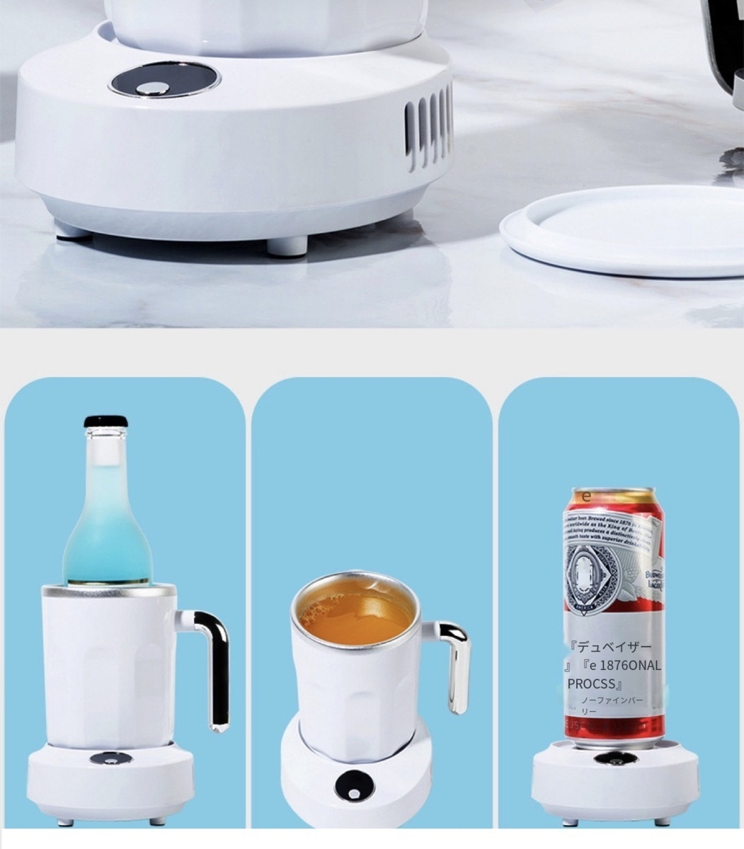 使用場所:手のひらサイズ、家庭やオフィスなどでの使用にも最適で、持ち運びも簡単です。ビール、飲み物、ジュース、ワイン、ヨーグルト、アイスクリーム、コーヒーなどの冷蔵飲料に最適です