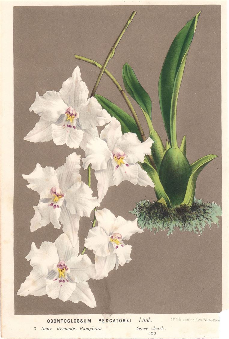 タイトルは「ODONTOGLOSSUM PESCATOREI Lind.」、