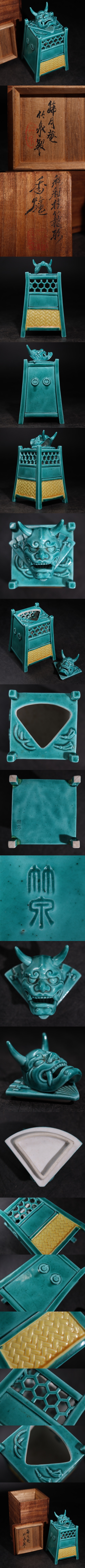 | 篩月庵 三浦竹泉 色釉 般若 蓋 香炉 共箱付 / 竹泉 京焼 香道具 煎茶飾 .G3932 |