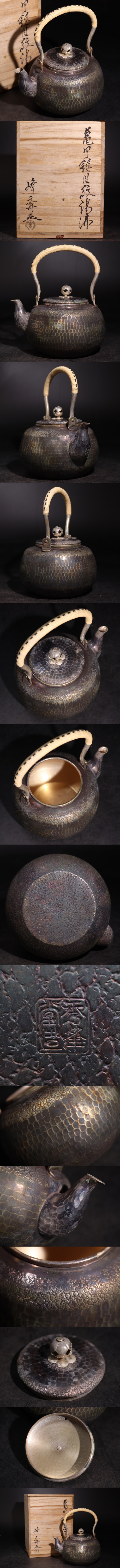 | 秀峯堂造 「 亀甲 槌目紋 湯沸 」 共箱付 / 金工 彫金 急須 茶器 煎茶道具 検索: 銀 燻銀 白銅 銅 .G3918 |