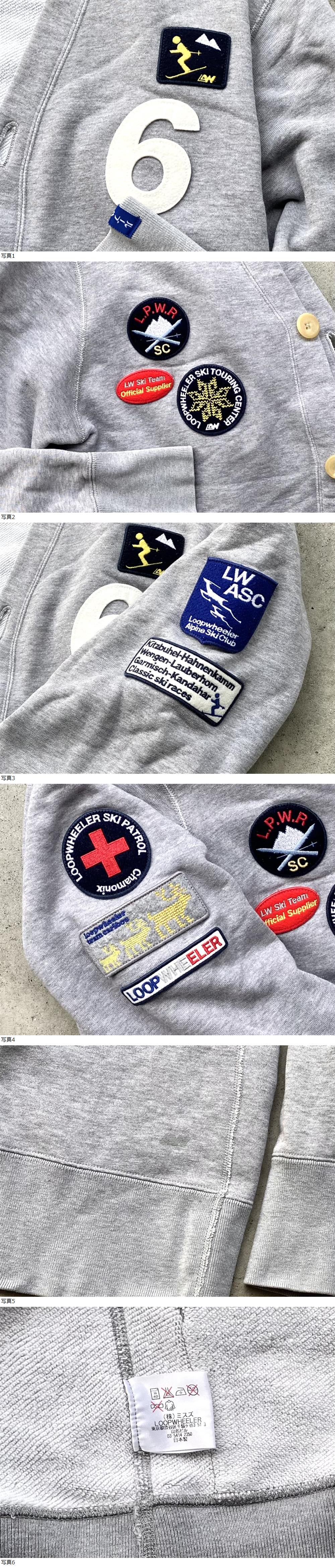LOOPWHEELER 吊り裏毛 スウェットカーディガン XL ループウィラー メンズ トレーナー セーター パーカー 刺繍 ワッペン 灰 グレー