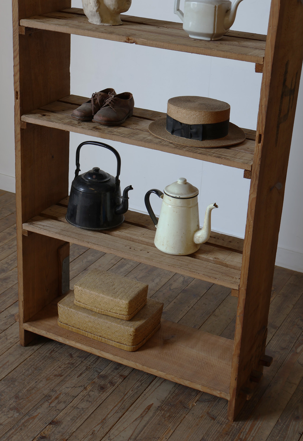 【古い味のある大きな陳列棚◆展示台】アンティーク店舗ギャラリーカフェアトリエ什器食器棚飾り棚本棚展示棚収納棚ケビントブロカント机