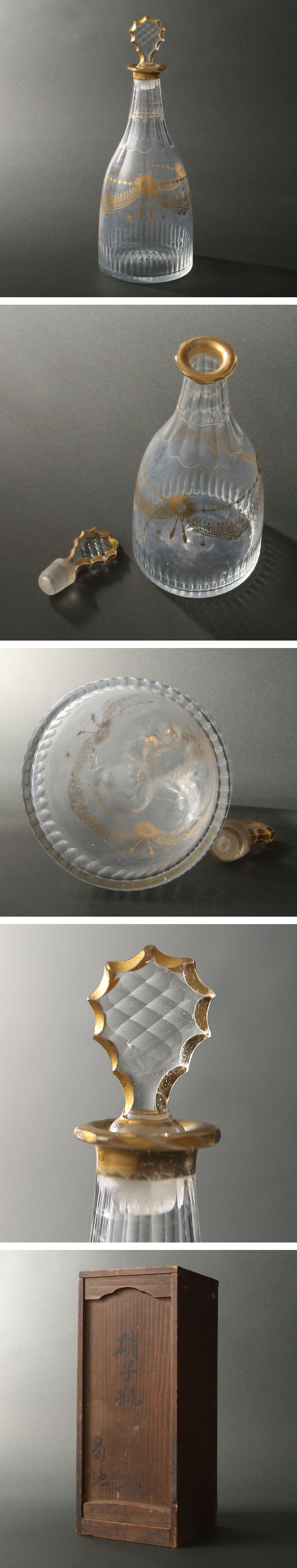 委託HK◇時代 金彩瓔珞文切子瓶(和食器 義山 ギヤマン デキャンター 冷酒器 徳利 花繋ぎ文 びーどろ 金彩バカラ 古民具 日本料理)