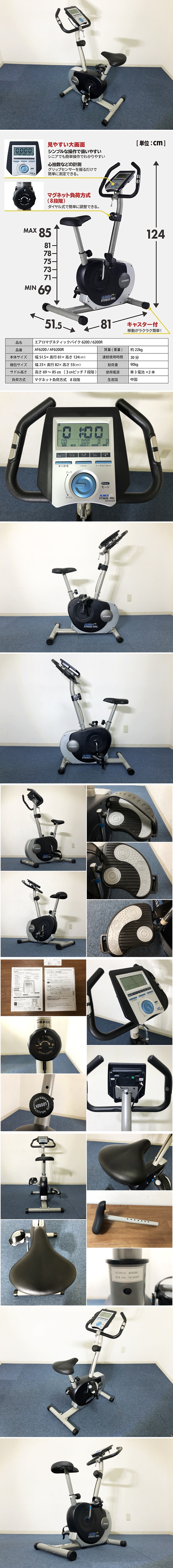 ALINCO フィットネスバイク AF6200 見やすい大型液晶メーター 8段階負荷調節 アルインコ 【商品詳細】 ■本体サイズ:幅515×奥行810×高さ1240mm ■使用者身長:150~180cm 使用者体重:~90㎏まで ■サドル調節:L690~H850 mm(7段階) ■重量:約22㎏ ■材質:スチール、ABS・PP(ポリプロピレン) ※採寸は目安程度でお考え頂き多少の誤差は了承願います。 ■主観になりますがキレイです、個人差が御座います画像にて判断願います。 ■大型液晶画面なので表示が見やすく、ボタンも一目で分かりやすいので操作が簡単です。 ■心拍数や体力評価も簡単に測定できます。 ■足の踏み外しを防ぐペダルバンドが付いているので、ご年配の方でも安心。 ■ハンドルは3段階、サドルは3cmピッチで7段階で調整が可能です。 ■脚部にキャスターが付属されており、移動が楽に簡単にできます。 ■メーカー:ALINCO(アルインコ) ■品名/型番:フィットネスバイク AF6200 ■完成品(直ぐに設置できます。) ■カラー:ブラック ■擦れ・小傷は御座います、気になさる方はご遠慮ください。 ■画像はイメージです、スピンバイク以外の付属品はございません。 ■他気になる事など御座いましたらお気軽に質問下さい。 (注意) 環境、モニター画面等により色合いが異なります。 【商品管理番号】601 |