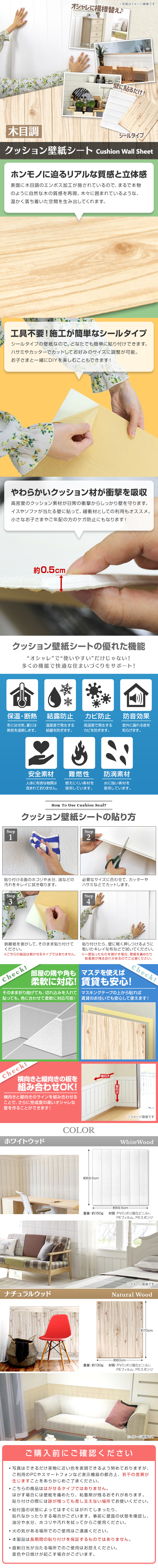 シールタイプで誰でも簡単に施工できます。 立体的な木目調・板張り風のデザインで、 オシャレな部屋に大変身! 廊下やトイレ、リビングや寝室など、様々な所の雰囲気を ガラリを変えてくれます。 オシャレな上に防音・断熱・保温・衝撃吸収と機能性も抜群、 お子様のいるご家庭にも好評です! カッティングシートなので、ハサミやカッターで 好きな大きさにカットして貼るだけで簡単! 一般の壁紙はもちろん、シルクの壁紙、金属、ガラス、 ビニール、セメント、木材にも貼り付け可能です! 汚れても簡単に拭き取れ、シール式なので面倒な糊付けなども 一切不要です!! 【商品詳細】 タイプ:木目調 枚数:12枚 カラー: ナチュラル サイズ:(約)70cm×60cm×0.5cm 素材:PVC 【注意事項】 ・シールの粘着力が強いため、一度貼ったらはがすことが出来ません。 予めご了承ください。 ・経年による接着剤の劣化などが起こる場合があり、 はがれにくくなったり接着剤が壁面に残る場合がございます。 ・火気のある場所でのご使用はお避け下さい。 ・生産ロットが違う場合、柄・色味が若干変わってくる場合がございます。 |