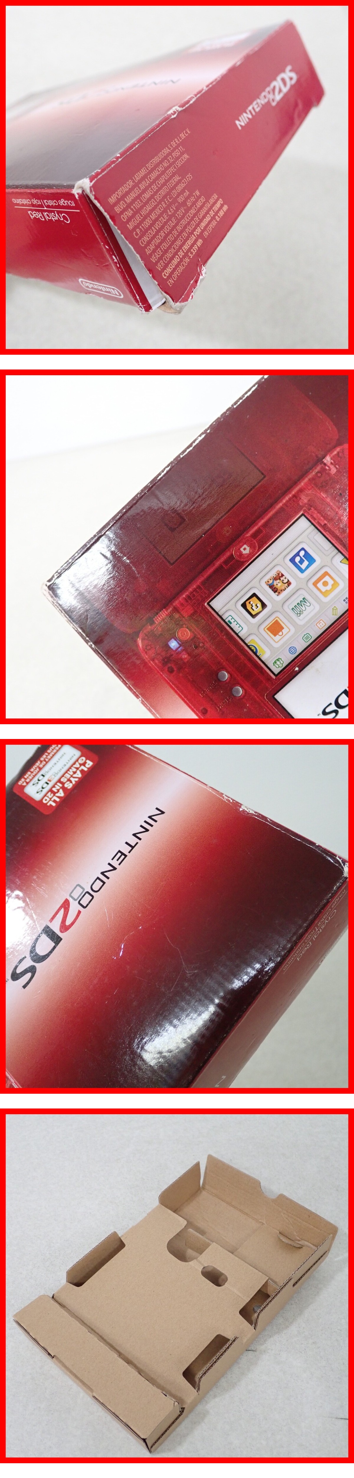 | 動作品 ニンテンドー2DS 海外版 北米版 本体 FTR-001 クリスタルレッド Crystal Red Nintendo 任天堂 箱説付 ■箱にスレ、角スレ、イタミ、汚れ、キズ、へこみ、ハゲ、ゆがみがあります。 ■取扱説明書にスレ、イタミがあります。 ■本体にスレがあります。 ■ケーブル類にキズ、汚れがあります。 ■初期化済みのSDカード(2GB)をお付けいたします。 ■国内版ソフトは認識しません。ご注意ください。 ■本体は動作チェック後に初期化済です。 ■商品の状態・セット内容につきましては写真をご確認ください。 ■一部を除いての発送は行っておりません。 ■写真のものが全てです。付属物の有無や状態については写真からご判断ください。 ■付属物については細かいチェックはしておりません。万が一、欠品があったり余計な物が入っていたとしてもご了承ください。 ■商品によりますが、発売されてから10年以上経過している中古品であることをご理解いただいた上でご入札をお願いいたします。なお、新品や美品、そのほか特記事項がある場合は別途明記します。 ■ご落札いただいた本体及び箱や取説、付属品、梱包材などは1つでも廃棄や破損をしないようにお願いいたします。 ■商品のご落札後、廃棄や破損をした場合、あるいは【修理や整備、カスタム、付属物の抜き取りやページの抜き取り/書込み等、ご落札者様の目的に応じて何らかの手が加えられた商品】に関しましては、問題があった場合でも対応や返金などの対処ができませんのでご注意ください。 |