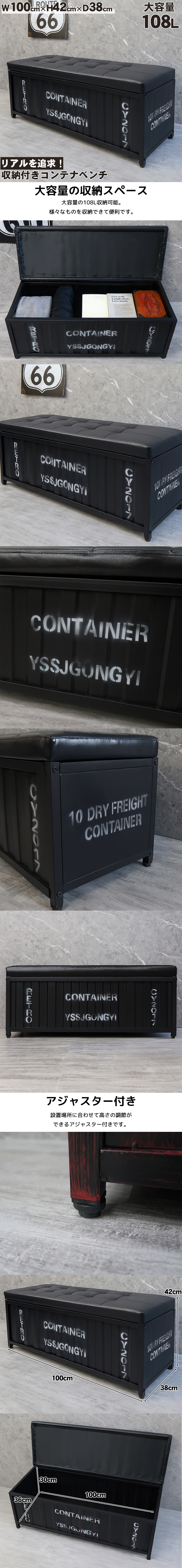 ベンチ コンテナ 収納ベンチ 収納ボックス おしゃれ 蓋付き オットマン チェア レトロ アメリカン雑貨 ヴィンテージ 椅子 収納 BZ-12BB