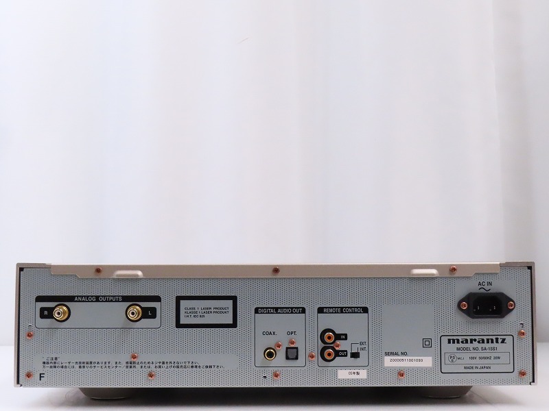 ■メーカー : marantz ■型番 : SA-15S1 ■外径寸法 : W440×H123×D419mm ■重量 : 13.5kg 【商品の状態 当店での確認内容】 音声出力は確認できておりますが、トレイ開閉に不良が見られ手動補助が必要となります。 ※上記により【現状商品】としての出品となります。 「商品の状態」に関しましては当方主観の目安となります。外観などは中古品で個人差もありますので詳細は画像にてご判断ください。 画像にて不明な点はご質問下さい。 出品商品は画像のものですべてになります。画像に写っているもの以外は付属いたしません。 【送料 全国一律 2,080 円 沖縄、離島は別途お見積り】 ※送料がお得になるサービスです(下取りシステムのご案内です) ストア決済利用時にクレジットカードやPayPay残高/PayPayクレジットを利用の方は留意点がございますのでこちらを参照上ご利用ください。 当ストアでは商品を安全にお届け出来るよう提携運送会社と協議の上、発泡緩衝材や強度段ボールの使用等 運送会社が指定する梱包方法や資材を採用しております。 より安全にお届け出来るよう商品仕様により梱包サイズが大きくなる場合や個口数が増える事がございます。 【当ストアオークションルールを入札前に必ずご確認ください。】 【落札後の取引手順】 ・落札後は取引ナビにて、必要事項をご入力後、送信ください。 取引終了後48時間(土、日は除く)以内に入力をお願い致します。 ※ご連絡が頂けない場合は落札者様都合でのキャンセルとさせていただきます。 ・落札代金(商品代金+消費税+送料)の入金をお願い致します。 ※大型商品の場合は送料確定後の決済となる為取引ナビを入力頂き、当ストアより送料のご案内が来るまでお待ちください。(土曜、日曜、祝日の場合は翌営業日より順次ご案内いたします) ・お支払い方法はクレジットカード/PayPay残高/PayPayクレジット/PayPay銀行/ゆうちょ銀行のみです。 ※商品代金引換(代引き)のお取り扱いはしておりません。 ※領収証の発行が必要な方はご連絡ください。 ※銀行振込の際の振込手数料はご負担願います。 ・入金確認後に出荷手配を致します。 (原則入金確認後3営業日以内に発送いたしますが、大型や重量のある製品はお時間をいただく場合もございます。) ・発送は当店指定の運送会社の元払いのみでの発送となります。 ※他の運送会社、送料代引き等は致しかねます。 ※落札者様ご自身での運送会社の手配いただく事も可能ですが荷物事故の責任の所在の問題上、梱包は致しかねます。 ※店頭にお越し頂き手渡しも可能(福岡市早良区)です。ご希望の方はご落札後にご連絡下さい。 ・大型/重量物商品の送料につきましては商品の特性上、荷降ろし状況等により送料が大きく前後し運送業者に別途見積りが必要な為、早めのお問い合わせにてお見積り上、入札をお願い致します。 【初期不良の保証について】 ・商品到着後の初期動作不良、また配送中の事故による破損、不具合が有る場合は、商品発送後10日以内に当ストアまでご連絡ください。当ストアでは修理での対応を優先させて頂きますが、修理不可の場合は全額返金させて頂きます。 (商品代金+消費税+送料のお支払い頂いた金額となります) 【初期不良の保証の対象外について】 次の場合は保証の対象外となりますのご留意ください ・ジャンク商品、現状商品、難あり商品での出品商品。 ※難あり商品に関しましては動作確認時に一部動作不良が確認された商品になり、記載している動作確認以外にも、動作不良がある可能性もございます。こちらに関しましても保証対象外となりますことをご理解ください。 ・年代物のオーディオなどで、当店にてわからない範囲で部品が交換されている場合 ・楽器類の特殊機材(マイクロスコープ等)での確認までは行っておりません。気になる方は事前にご質問いただくか、入札をお控えください。 ※初期不良に関しましては【商品の状態】に記載のもの、またそれによって起因する動作不良は対象外です。 ※商品発送後10日を過ぎてのご連絡は対応が出来ませんので、商品が到着しましたらお早めに確認をお願い致します。 【メーカー保証の加入・継承】 ・未使用品、展示品やメーカー保証期間が残っている商品に関しまして、メーカー保証の加入、継承が必要な方は、落札後取引ナビ内にて当ストアにお知らせください。商品発送までにご連絡いただけない場合、メーカー保証の手続きを承れない場合があります。 【評価について】 ・評価不要の場合、必ず取引ナビの「要望欄」にてお知らせください。それ以外でご連絡をいただいた場合、対応できない可能性がございます。一度行った評価はシステム上取り消しが行えませんのでご了承ください。 【入札削除・キャンセルについて】 ・入札後はトラブル防止の為いかなる事情がおきましても入札を削除等は致しておりません。 ご検討の上入札をお願い致します。間違った際の入札額の金額訂正はご自身で行ってください。 入