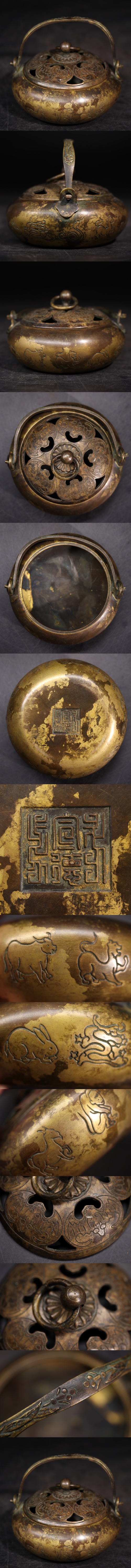 | 大明宣徳年製 底款 古銅 金塗 香炉 / 明 宣徳 中国美術 銅 金工 彫金 香道具 煎茶飾 .G3438 |
