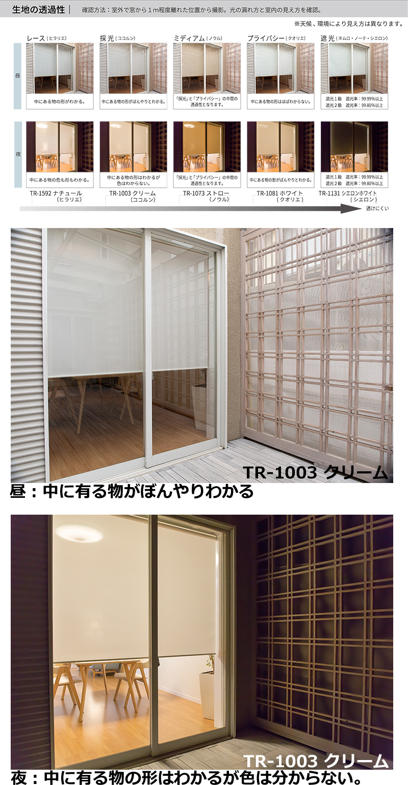 [昼] 中にある物の形がぼんやりとわかる。(日光により見え方はかわります。)