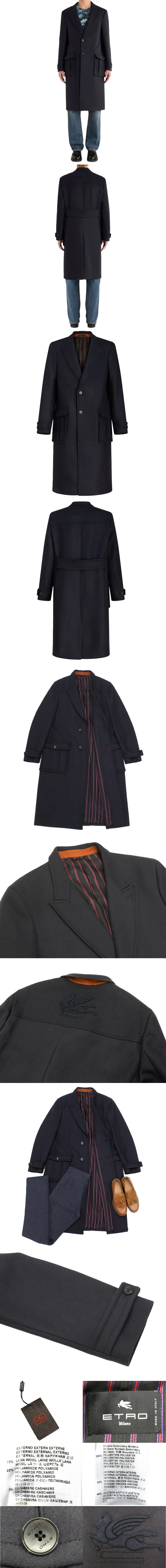 60万新品◆54=XL◆エトロ◆ウール混紡シングルブレストコート 紺ネイビー【ETRO】