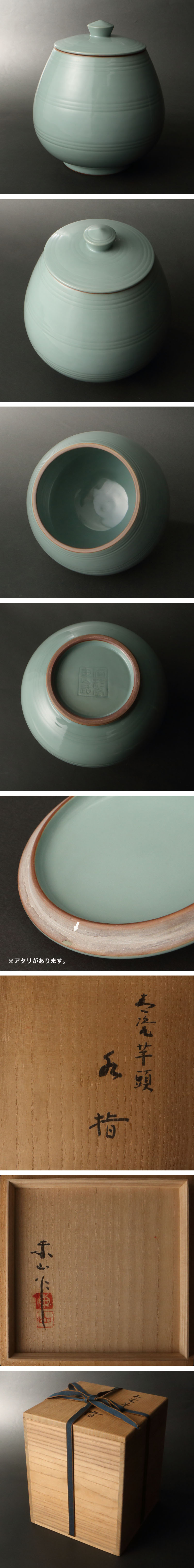 宮永東山 青磁芋頭水指 共箱
