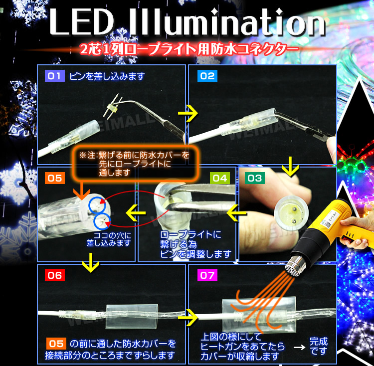店舗の飾り付けやイベント、パーティー、ハロウィンやクリスマスに。 生活防水仕様なので屋外での使用ももちろん可能!! 柱に巻きつけたり窓枠に沿って取付けたりもOK! 1m単位でカット可能!! イルミネーション初心者でも手間をかけずに本格的な飾り付けができます。 LEDは発光率が高いため発熱もほとんどなく、環境にも優しい照明です。 別売りの電源コントローラーで8パターン点灯が楽しめます。 ■仕様 商品名:LEDロープライト(10mm/2芯) 色:グリーン 長さ:50m 定格電圧:100V~110V 防水レベル:IP65 LED数:約30灯/m 表面素材:紫外線に強い透明PVC使用 導線:ニッケルメッキ銅線使用 ・電源コントローラーは付属しておりません。 ・こちらの商品だけでは光りませんのでご注意下さい。 ・必要数量に応じ、別売の電源コントローラーをお求め下さい。 ・約1m毎に、カットできる箇所【ハサミマーク】があります。 それ以外の部分でカットしないで下さい。点灯しなくなる可能性があります。 ・接続箇所の2本のピンには挿す向きがあります。もし点灯しない場合は2本のピンを逆向きに挿し直してお試し下さい。 ・入荷時期により、多少色味が異なる場合がございます。初期不良対象外となりますのでご了承下さい。 ・写真と実物は多少異なる場合がございます。あらかじめご了承下さい。 常時点灯 チューブライト(ロープライト)用電源コード 8パターン点灯 チューブライト(ロープライト)用コントローラー 8パターン点灯 チューブライト(ロープライト)用防水コントローラー チューブライト(ロープライト)用 十字型 コネクタセット チューブライト( ロープライト)用 T字型 コネクタセット チューブライト(ロープライト)用 L字型 コネクタセット ●もちろん新品未使用品です。 |