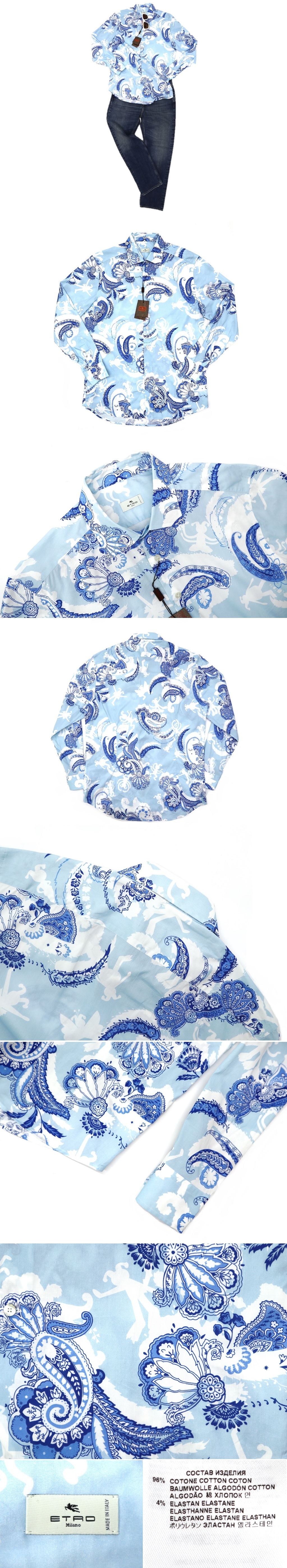 9万新品◆40=M~L◆エトロ◆ペイズリーモチーフ ストレッチシャツ 薄青【ETRO】