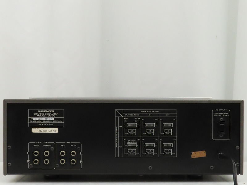 ■メーカー : Pioneer ■型番 : SG-70 ■外径寸法 : W420×H150×D355mm ■重量 : 7.1kg 【商品の状態 当店での確認内容】 基本動作確認済み 「商品の状態」に関しましては当方主観の目安となります。外観などは中古品で個人差もありますので詳細は画像にてご判断ください。 画像にて不明な点はご質問下さい。 出品商品は画像のものですべてになります。画像に写っているもの以外は付属いたしません。 【送料 全国一律 2,080 円 沖縄、離島は別途お見積り】 ※送料がお得になるサービスです(下取りシステムのご案内です) ストア決済利用時にクレジットカードやPayPay残高/PayPayクレジットを利用の方は留意点がございますのでこちらを参照上ご利用ください。 当ストアでは商品を安全にお届け出来るよう提携運送会社と協議の上、発泡緩衝材や強度段ボールの使用等 運送会社が指定する梱包方法や資材を採用しております。 より安全にお届け出来るよう商品仕様により梱包サイズが大きくなる場合や個口数が増える事がございます。 【当ストアオークションルールを入札前に必ずご確認ください。】 【落札後の取引手順】 ・落札後は取引ナビにて、必要事項をご入力後、送信ください。 取引終了後48時間(土、日は除く)以内に入力をお願い致します。 ※ご連絡が頂けない場合は落札者様都合でのキャンセルとさせていただきます。 ・落札代金(商品代金+消費税+送料)の入金をお願い致します。 ※大型商品の場合は送料確定後の決済となる為取引ナビを入力頂き、当ストアより送料のご案内が来るまでお待ちください。(土曜、日曜、祝日の場合は翌営業日より順次ご案内いたします) ・お支払い方法はクレジットカード/PayPay残高/PayPayクレジット/PayPay銀行/ゆうちょ銀行のみです。 ※商品代金引換(代引き)のお取り扱いはしておりません。 ※領収証の発行が必要な方はご連絡ください。 ※銀行振込の際の振込手数料はご負担願います。 ・入金確認後に出荷手配を致します。 (原則入金確認後3営業日以内に発送いたしますが、大型や重量のある製品はお時間をいただく場合もございます。) ・発送は当店指定の運送会社の元払いのみでの発送となります。 ※他の運送会社、送料代引き等は致しかねます。 ※落札者様ご自身での運送会社の手配いただく事も可能ですが荷物事故の責任の所在の問題上、梱包は致しかねます。 ※店頭にお越し頂き手渡しも可能(福岡市早良区)です。ご希望の方はご落札後にご連絡下さい。 ・大型/重量物商品の送料につきましては商品の特性上、荷降ろし状況等により送料が大きく前後し運送業者に別途見積りが必要な為、早めのお問い合わせにてお見積り上、入札をお願い致します。 【初期不良の保証について】 ・商品到着後の初期動作不良、また配送中の事故による破損、不具合が有る場合は、商品発送後10日以内に当ストアまでご連絡ください。当ストアでは修理での対応を優先させて頂きますが、修理不可の場合は全額返金させて頂きます。 (商品代金+消費税+送料のお支払い頂いた金額となります) 【初期不良の保証の対象外について】 次の場合は保証の対象外となりますのご留意ください ・ジャンク商品、現状商品、難あり商品での出品商品。 ※難あり商品に関しましては動作確認時に一部動作不良が確認された商品になり、記載している動作確認以外にも、動作不良がある可能性もございます。こちらに関しましても保証対象外となりますことをご理解ください。 ・年代物のオーディオなどで、当店にてわからない範囲で部品が交換されている場合 ・楽器類の特殊機材(マイクロスコープ等)での確認までは行っておりません。気になる方は事前にご質問いただくか、入札をお控えください。 ※初期不良に関しましては【商品の状態】に記載のもの、またそれによって起因する動作不良は対象外です。 ※商品発送後10日を過ぎてのご連絡は対応が出来ませんので、商品が到着しましたらお早めに確認をお願い致します。 【メーカー保証の加入・継承】 ・未使用品、展示品やメーカー保証期間が残っている商品に関しまして、メーカー保証の加入、継承が必要な方は、落札後取引ナビ内にて当ストアにお知らせください。商品発送までにご連絡いただけない場合、メーカー保証の手続きを承れない場合があります。 【評価について】 ・評価不要の場合、必ず取引ナビの「要望欄」にてお知らせください。それ以外でご連絡をいただいた場合、対応できない可能性がございます。一度行った評価はシステム上取り消しが行えませんのでご了承ください。 【入札削除・キャンセルについて】 ・入札後はトラブル防止の為いかなる事情がおきましても入札を削除等は致しておりません。 ご検討の上入札をお願い致します。間違った際の入札額の金額訂正はご自身で行ってください。 入札額の変更方法 【入札に関しての注意事項】 ・最近イタズラ入札が多く見られるため、新規IDや悪い評価が一定数あるIDからの入