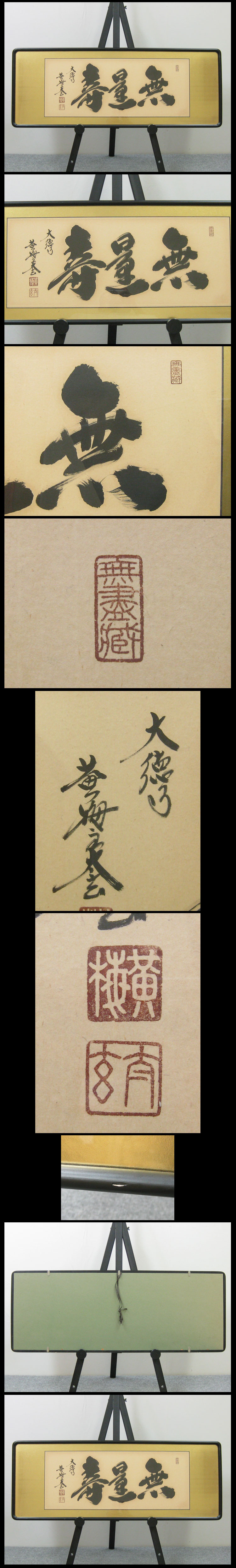 【小林太玄】(太玄義透) 昭和13年奉天(今の瀋陽)生。兵庫県の赤穂育ち。 昭和50年大徳寺塔頭黄梅院住職に就任。 豪快な書体は人気が高い。 ★商品サイズ★ ■額 35.2×93cm ■作品 25.5×63.5cm ★商品の状態★ 表面にアクリル板が入っています。 作品は良い状態です。 額縁に少しのスレきずがあります。 ご承知のうえご入札をお願いします。 時代など詳しくは画像にてよく確認のうえでご検討いただければと思います。 どうぞよろしくお願いいたします。 |