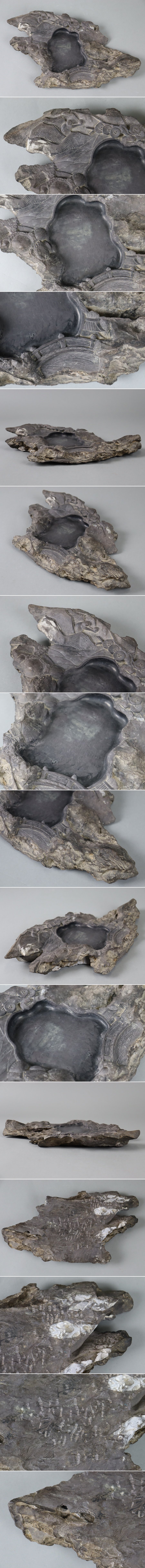 中国美術 書道具 人物風景彫刻 硯 幅40cm 端渓 時代物 細密細工 古美術品[d1411]
