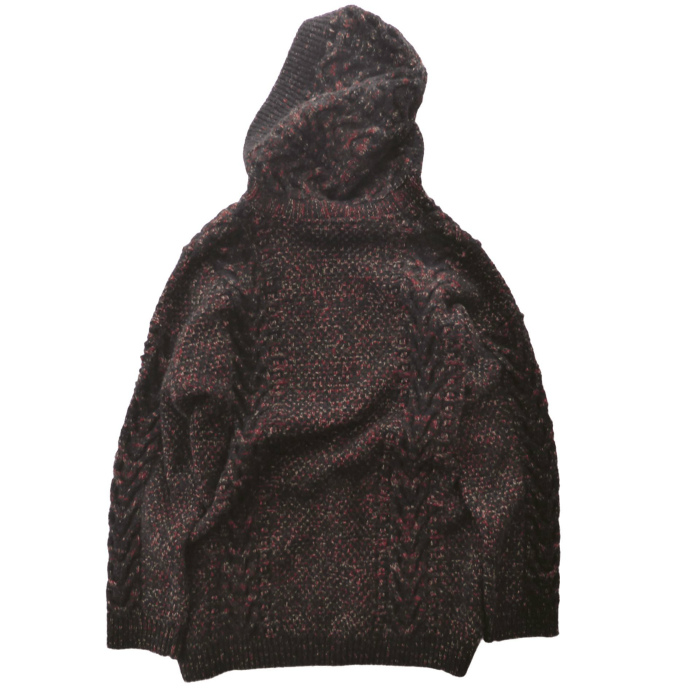 | クリスチャンディオールのウールニットフーディ。 目の粗いローゲージのケーブル状に編まれた重厚感のあるニット。 ブラック、レッド、アイボリーのメランジ調のカラーが奥行きのある生地感です。 ややゆとりのあるシルエットにコンパクトなフードがデザイン性を感じる逸品です。 スキッパー仕様の為、シャツやTシャツなど様々なスタイリングでお楽しみいただける一着です。 |