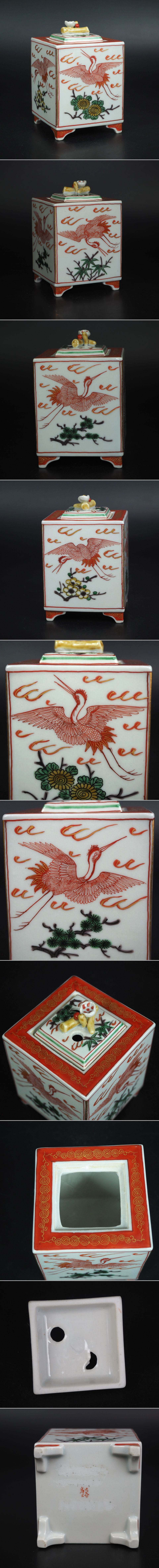 | 商品説明 | 高さ約 11.5cm 幅約 7.5×7.5cm ご覧のように、九谷峯久造細密手描き 梅摘み四角香炉です。色が鮮やか、絵付けが細かい、総手描きで、大変良い物です。底に記念銘が消された痕がありますが、状態がとてもおよい、詳しくは写真でご確認ください。 |