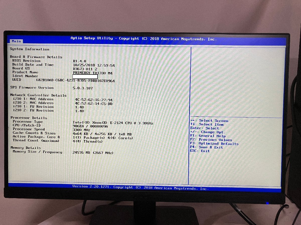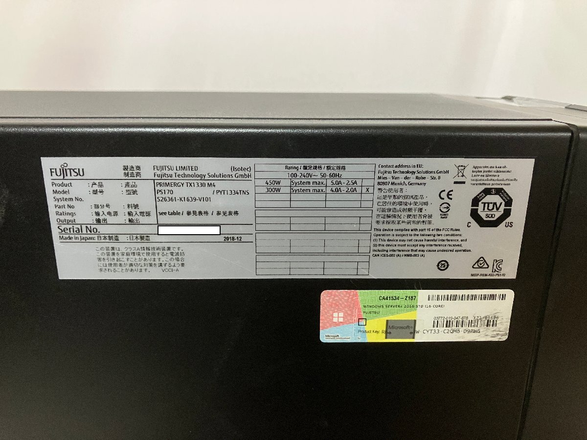 ● 富士通 サーバーPC PRIMERGY TX1330 M4 Xeon E-2124 3.30Ghz メモリ24GB HDDなし 中古品【3117】2019年