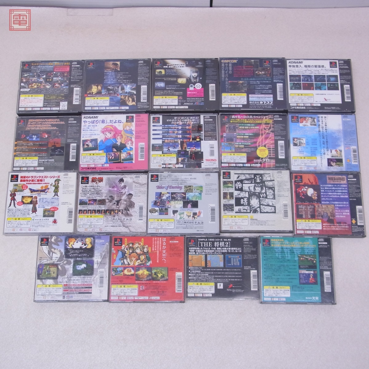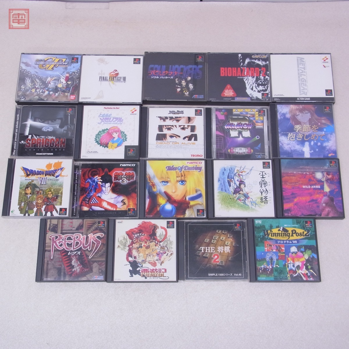 PS プレステ SDガンダム Gジェネレーション・エフ/西遊記/アルカノイド リターンズ 等 まとめて 19本セット 箱説帯付 ダブりなし ■こちらの商品は【動作チェック等】を一切行っていないため、どの様な不具合が生じましても当店では交換・返金・返品等の対応はできません。 ■ご理解ご納得いただける方のみご入札をお願いいたします。 ■タイトルは画像よりご確認ください。 ■全体的にスレ、キズ、汚れ、ヤケ、イタミ等があります。 ■詳細な検品/清掃等は行っておりませんので、画像、記載以外のダメージがある可能性があります。予めご了承ください。 ■写真のものが全てです。付属物の有無や状態については写真からご判断ください。 ■付属物については細かいチェックはしておりませんので、万が一、欠品があったり余計な物が入っていたとしてもご了承ください。 ■商品到着後、当店の保証期間中は、商品及び箱や取説、付属品などを1つでも廃棄や破損をしないようにお願い致します。廃棄や破損をした場合、商品に問題があった場合でも対応や返金などの対処ができなくなります。 ■商品によりますが、発売されてから10年以上経過している中古品である事をご理解頂いた上でご入札をお願い致します。なお、新品や美品、また特記事項がある場合は別途明記します。 | |||