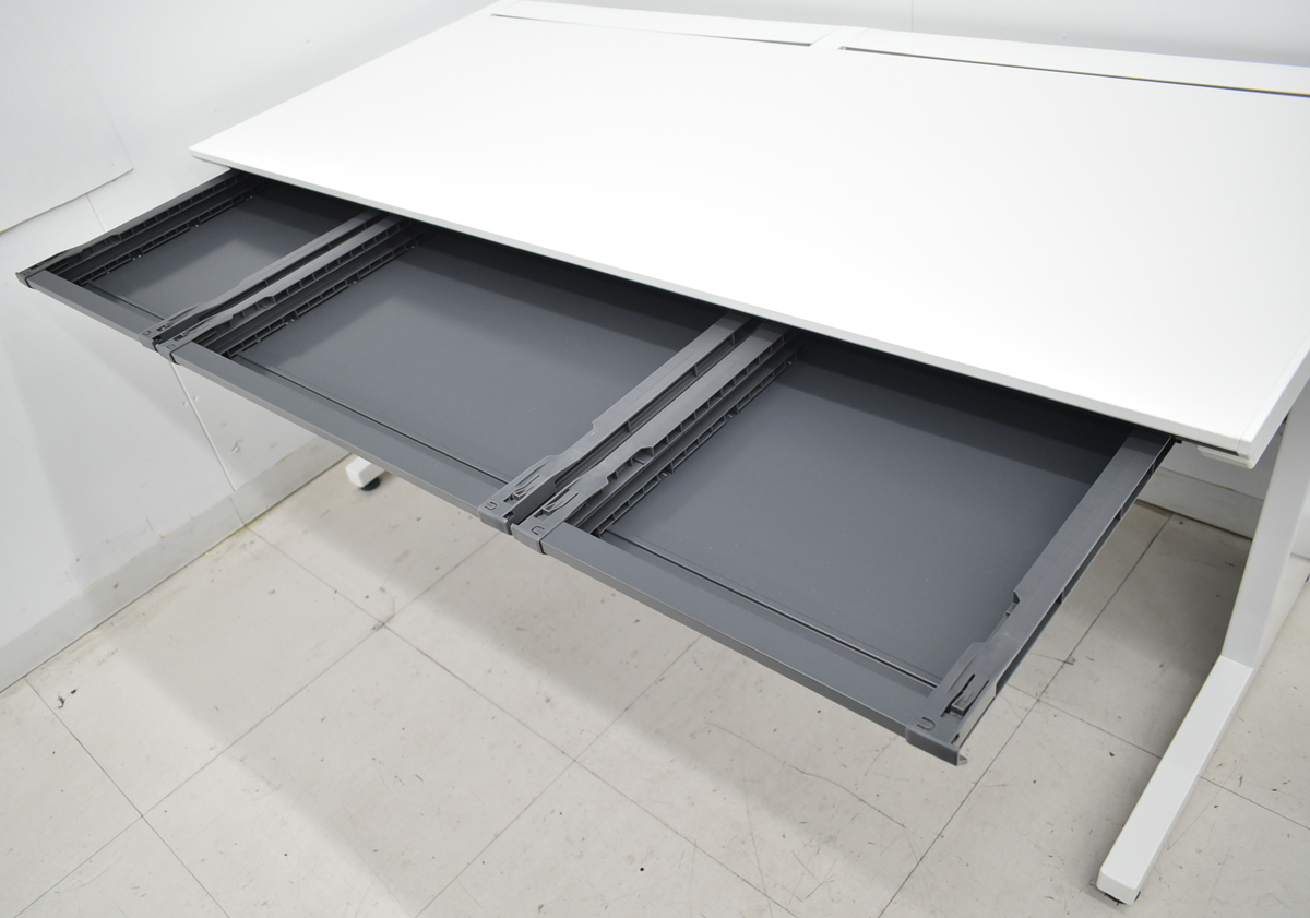 | ■備考 コクヨ KOKUYO ISシリーズ 平デスク 幅1500 2019年製 コクヨのISシリーズ・デスクです。 多様化するITツールに最適な環境を提供するスタンダードデスクです。 ●シンプルで汎用性の高い構造とデザイン 多様なレイアウト対応: 片袖デスク、両袖デスク、平机、L型デスク、ワゴンなど、豊富なバリエーションが用意されており、部門や業務内容に合わせた多様なオフィスレイアウトに柔軟に対応できます。 フラットなデザイン: 装飾を排したシンプルなデザインで、様々なオフィス空間に馴染みやすく、拡張や配置換えが容易です。 ●充実した配線機能 現代のオフィスで必須となるPCやOA機器の配線を効率的に処理するための機能が充実しています。 配線ダクト: 天板の奥側に配線ダクトが設けられており、デスク上のコード類をすっきりと収納・処理できます。 コードホール(開口部): 天板にコードホールがあり、デスク上の機器からダクトへの配線を引き込みやすくなっています。 ※左側面の2か所に少々膨らんでいるところがあります。 ※分解梱包の上出荷いたします。商品到着後お客様による組み立て作業が必要となります。商品到着後お客様による組み立て作業が必要となります。 ※佐川急便ではなくJPロジスティクス(旧トールエクスプレスジャパン)・西濃運輸・自社便・チャーター便・チャーター便(混載)等で弊社の判断によりお届け方法を決定させていただきます。 4t車が進入できる路上までのお届けとなります。 トラック荷台上でのお引渡しとなります。 男性2名以上での荷受けを推奨しております。 日曜祝日の配達日指定が出来ません。 配達時間帯指定が出来ません(9~17時着・配達当日配送ルートが決まるため)。 4t車が進入できない場所への配送・日曜祝日着・配達時間帯指定・トラックからの荷下ろし作業・搬入作業・組立作業等をご希望である場合はお見積りにて対応となりますのでお申し付けください(お見積りできない場合がございます)。 クリーニングとメンテナンスをしっかり行ってお届けします。 この商品の程度は中古品として美品といえます。 多少の擦れや傷はあるものの気になる程ではないでしょう。 御使用端末の環境により多少画像の表示色と実物の色に差違が生じる場合がございますのでご了承ください。 | |