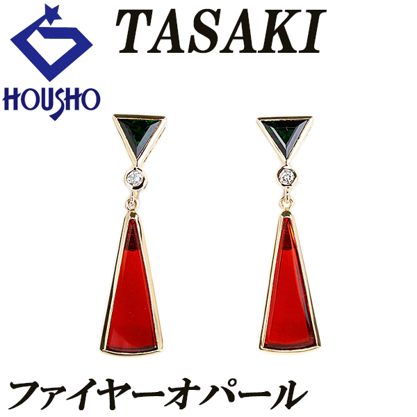 【セール開催中】タサキ 田崎真珠 ファイアオパール イヤリング ダイヤモンド トルマリン K18YG トリリアント 三角 揺れ 宝正 901614