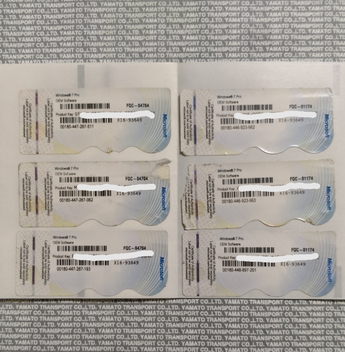 廃棄PCから剥がしたシールです。その為、破れや汚れ等はありますがプロダクトキーの部分は問題なく読めます。