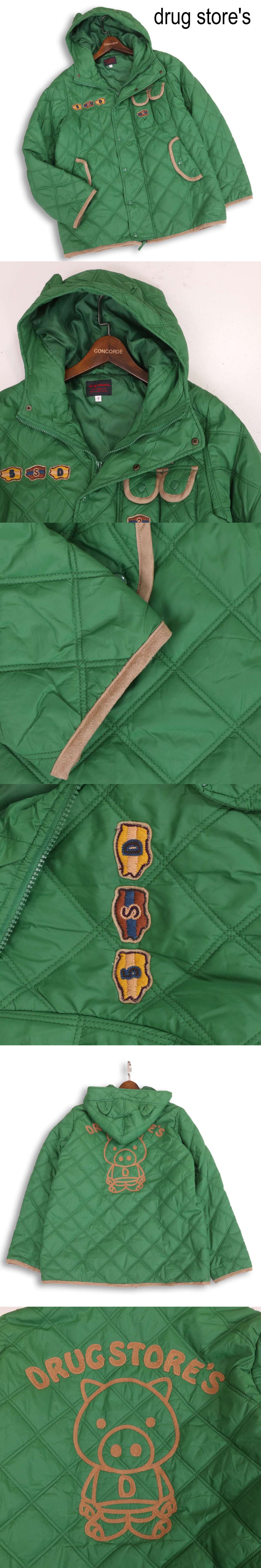 drug store's ドラッグストアーズ 秋冬 ブタ ロゴ刺繍♪ フーディー 中綿 キルティング ジャケット Sz.F レディース