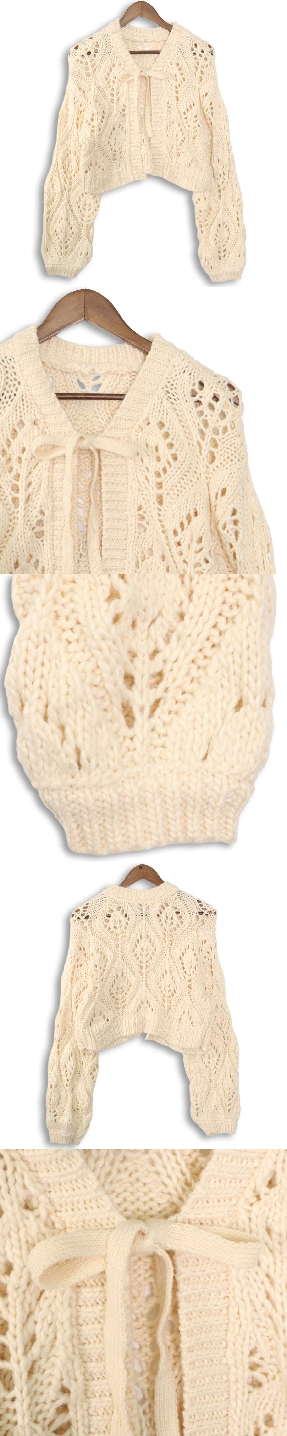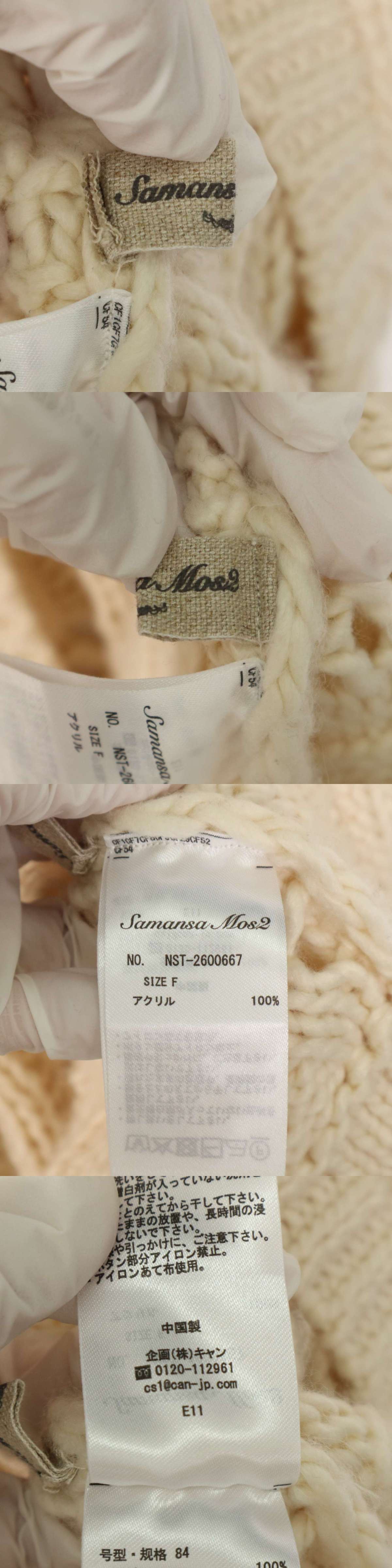 SM2 Samansa Mos2 サマンサモスモス 秋冬 レース編み★ フロントリボン ニット カーディガン Sz.F レディース 白