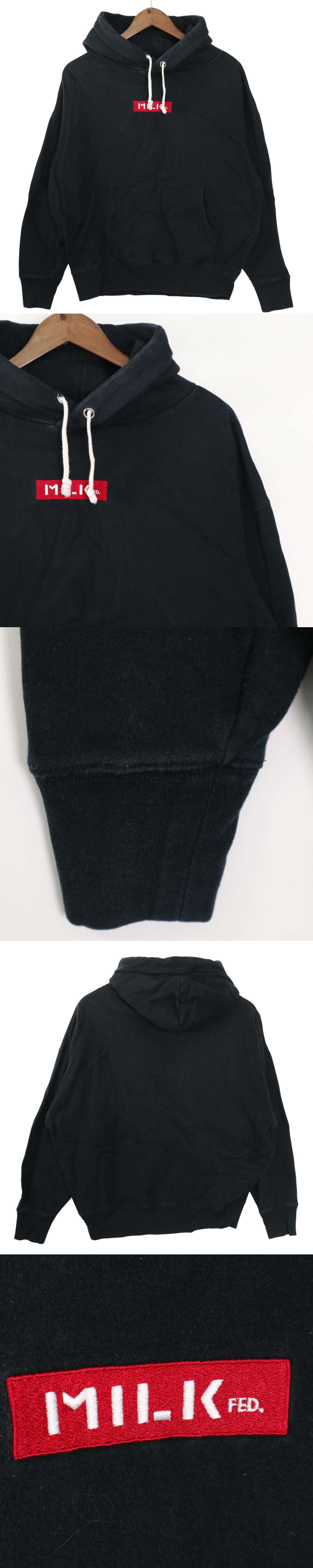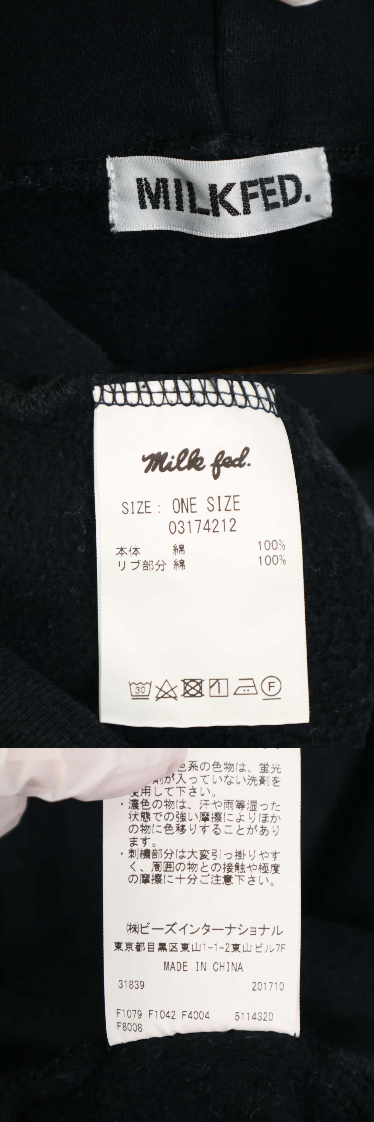 MILKFED ミルクフェド 秋冬 ロゴ刺繍★ スウェット 裏起毛 プルオーバー パーカー Sz.One size レディース 黒