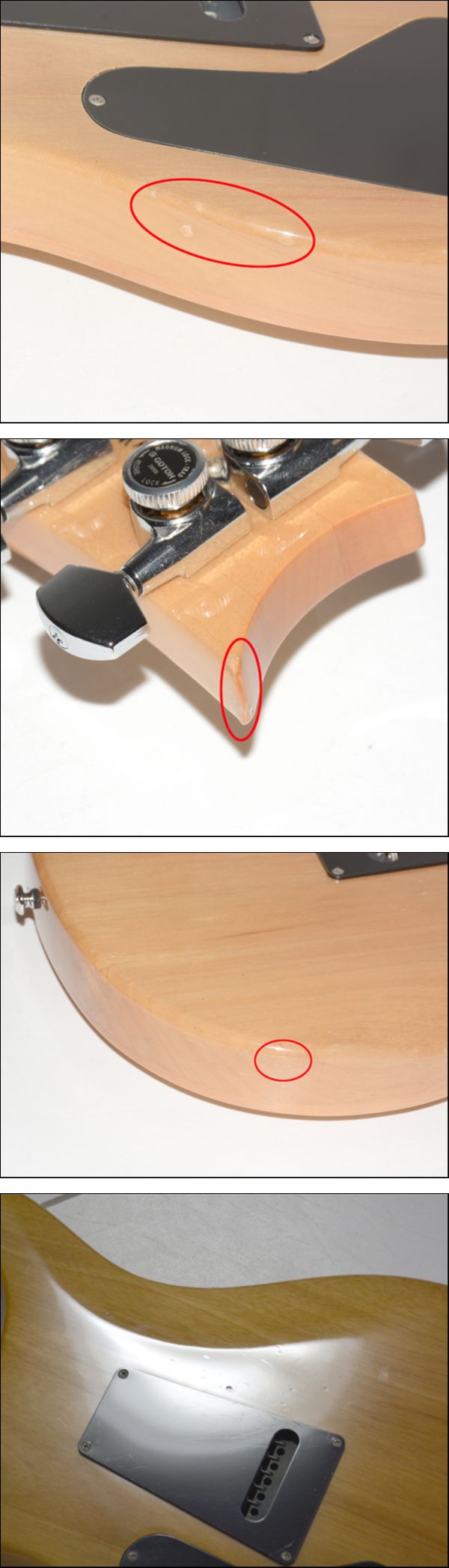 こちらはUSED品になります。 ・ボディ正面に多少のスレ、キズが見られます。 ・ボディ側面に多少のスレ、キズ、打痕が見られます。 (画像にてご確認ください。) ・ボディ背面にスレ、キズ、打痕が見られます。 (画像にてご確認ください。) ・ボディ底面に多少のスレ、小キズが見られます。 ・ネックに多少のスレ、キズが見られます。 ・ヘッドに多少のスレ・キズ、打痕、塗装はがれが見られます。 (画像にてご確認ください。) ・指板に多少のスレ、小キズ、打痕が見られます。 ・ペグがGOTOH製のロックペグに交換されています。 ・ペグ・ブリッジ・ジャック等金属部分に多少のスレ、小キズ、くすみが見られます。 ・ピックアップにスレ、小キズ、金属部分に僅かなサビが見られます。 ・ノブに多少のスレ、キズが見られます。 ・セレクタースイッチに多少のスレ、小キズ、僅かな曲がりが見られます。 ・ネジに多少のスレ、小キズ、僅かなサビが見られます。 ・バックプレートにスレ、キズが見られます。 ・ケースにスレ、キズ、汚れ、ほつれ等が見られます。 全体的に多少のスレ・キズ、打痕等が見られますが、 上記の点以外に特に目立ったキズ、ダメージは見られない状態です。 ネックはやや順反り傾向です。 (現在の弦高は12Fで、1弦側:約2.0mm、6弦側:約3.0mm) 重量:約3.2kg、ナット幅:約42mm、スケール:約634mm |