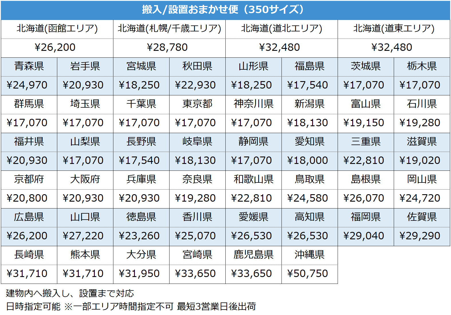 ※離島等の場合、配送可否含めて確認させていただきます。 ※同梱発送について… 同梱発送は、できる範囲で対応させて頂いております。 同梱したものが170サイズを超える荷物はそれ以外の混載便にて発送とさせて頂きます。 家具など大型商品は配送事故防止の為、同梱発送は行っておりません。 ※大量購入の場合、自社配送、トラックチャーター手配や搬入設置手配、耐震施工手配、養生手配などご相談ください。 |