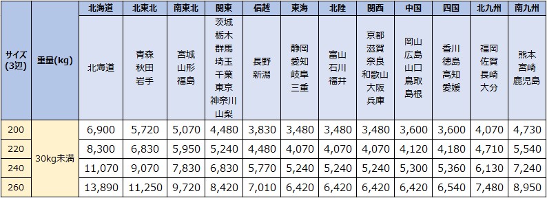 请参考商品网页上的说明,若无说明,一般普通3KG左右的普通件700日元左右,超大件2000日元至1万日元不等。下单前有疑问的请咨询客服。