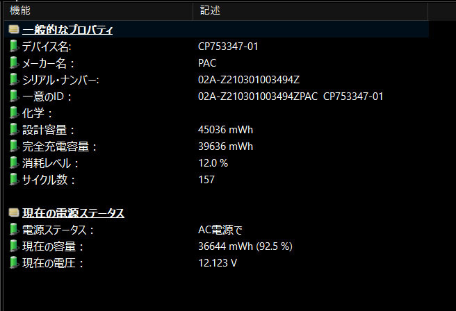●バッテリーは消耗度12.0%ですので、まだまだ使用できます。(画像10参照)