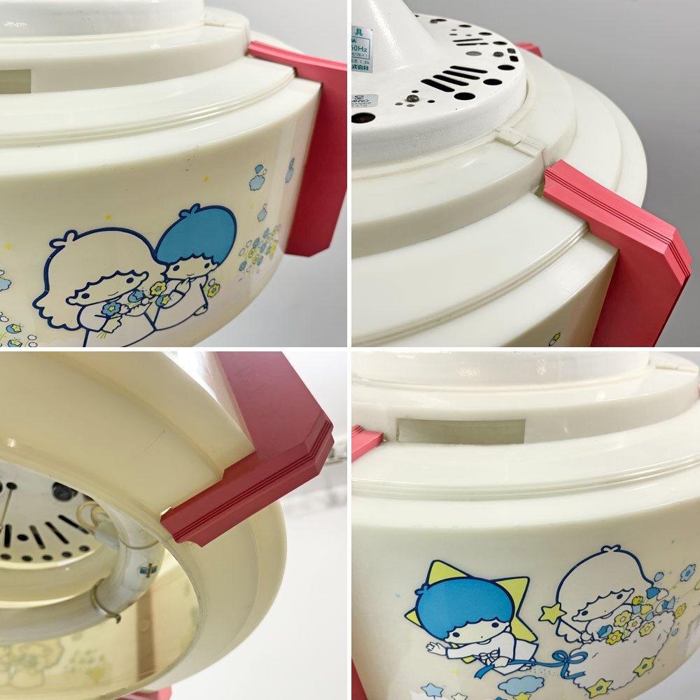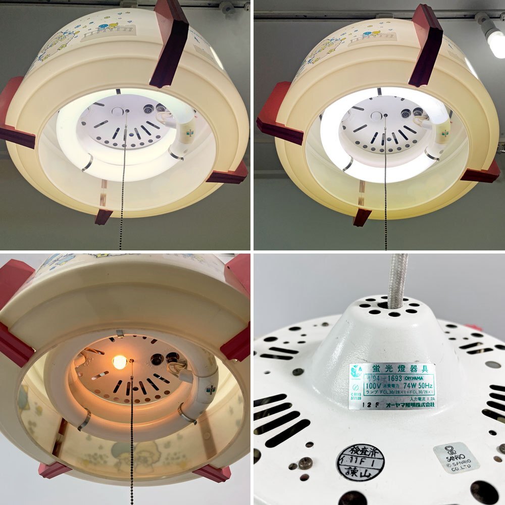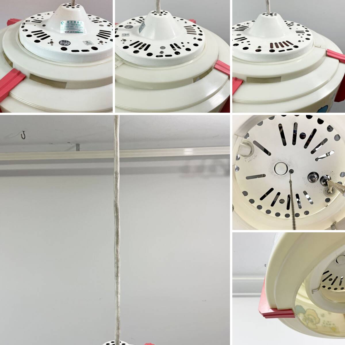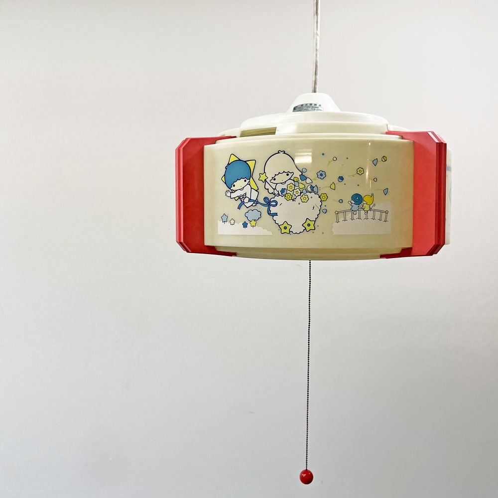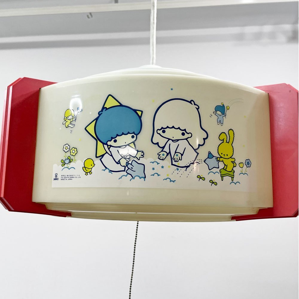 | コメント | ハローキティなどで知られるサンリオから発売されていたオーヤマ(OHYAMA)照明のペンダントライトです。 キキララの愛称で親しまれる可愛らしいサンリオキャラクターが描かれたシェードが魅力的。 4面全て違うイラストが描かれており、見る方向によって様々なキキララをお楽しみ頂けます。 小さな赤いボールのプルスイッチを引っ張る事で、蛍光灯2本蛍光1本豆電球の3段階の点灯が可能。 当時物ならではの温かみを感じさせる風合いはレトロな雰囲気を演出しています。 中古市場でもあまり出回らないアイテム。 サンリオがお好きな方やお子様がいらっしゃるご家庭にお勧めです。 使用蛍光灯:30形×2(点灯管×2必要) ※蛍光灯は付属致しません。 ※当ショップは、主にリサイクル品を取り扱っております。基本的にUSED品である事をご理解頂き、ご入札をご検討下さいませ。 |