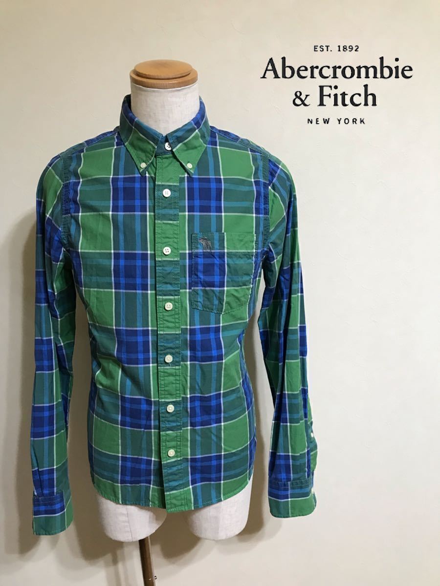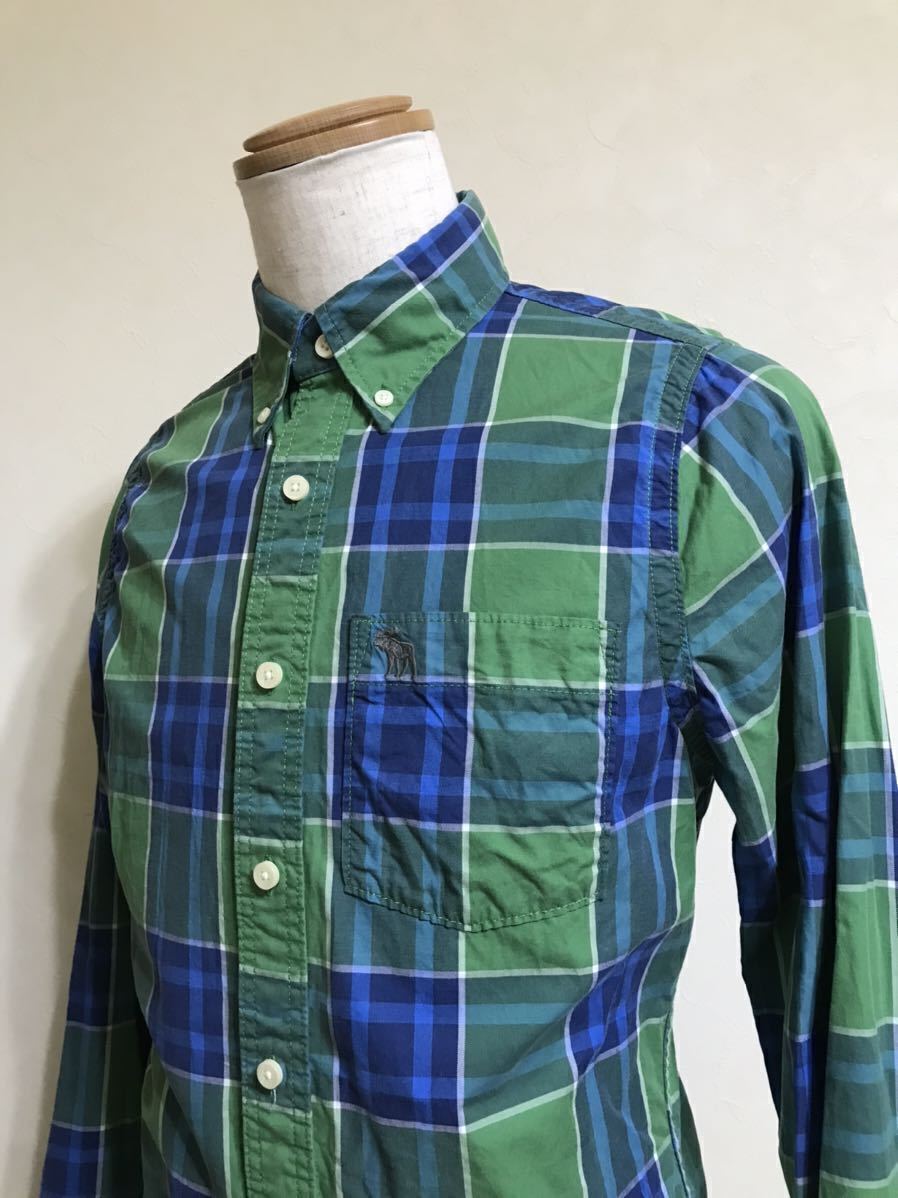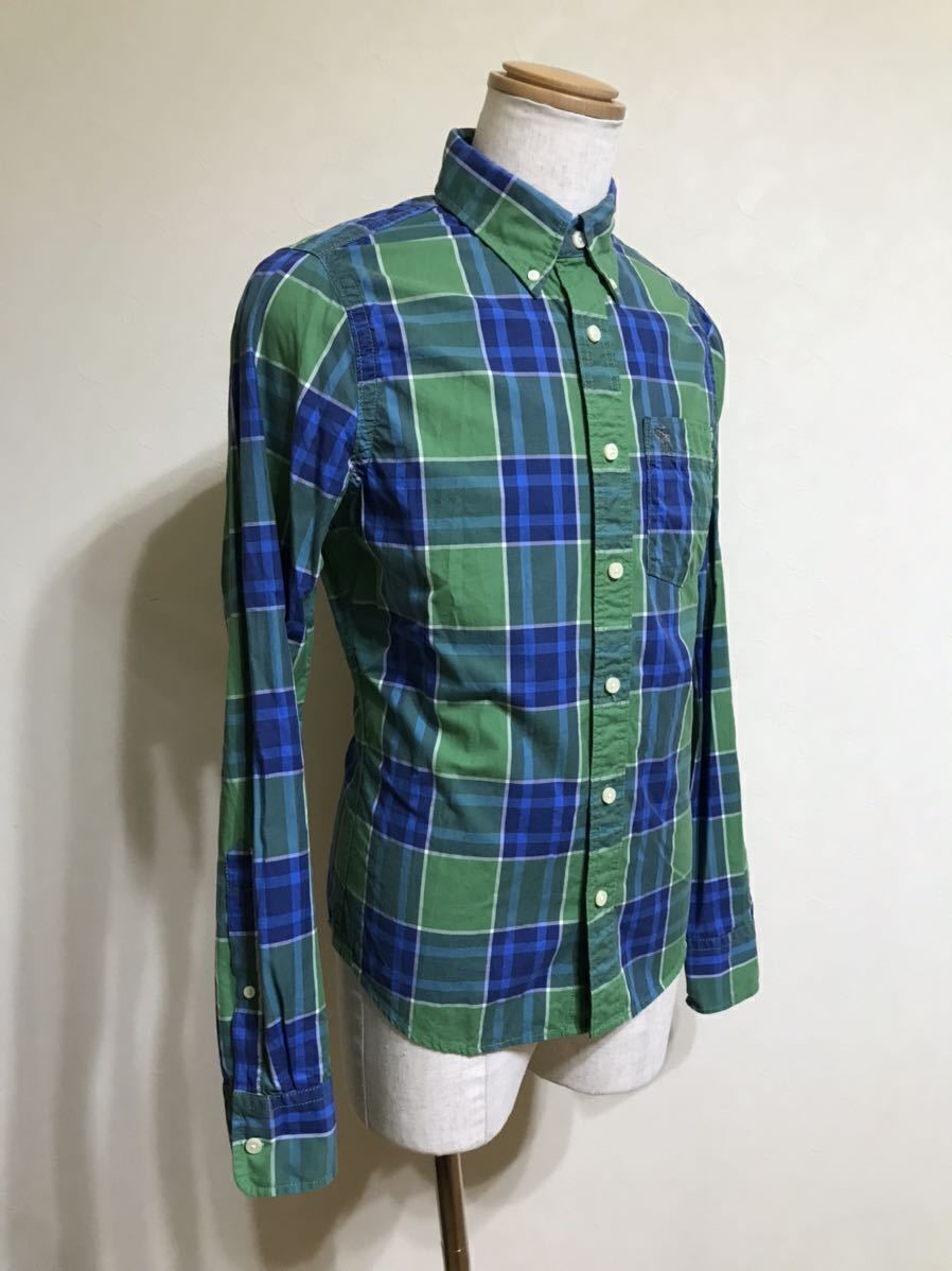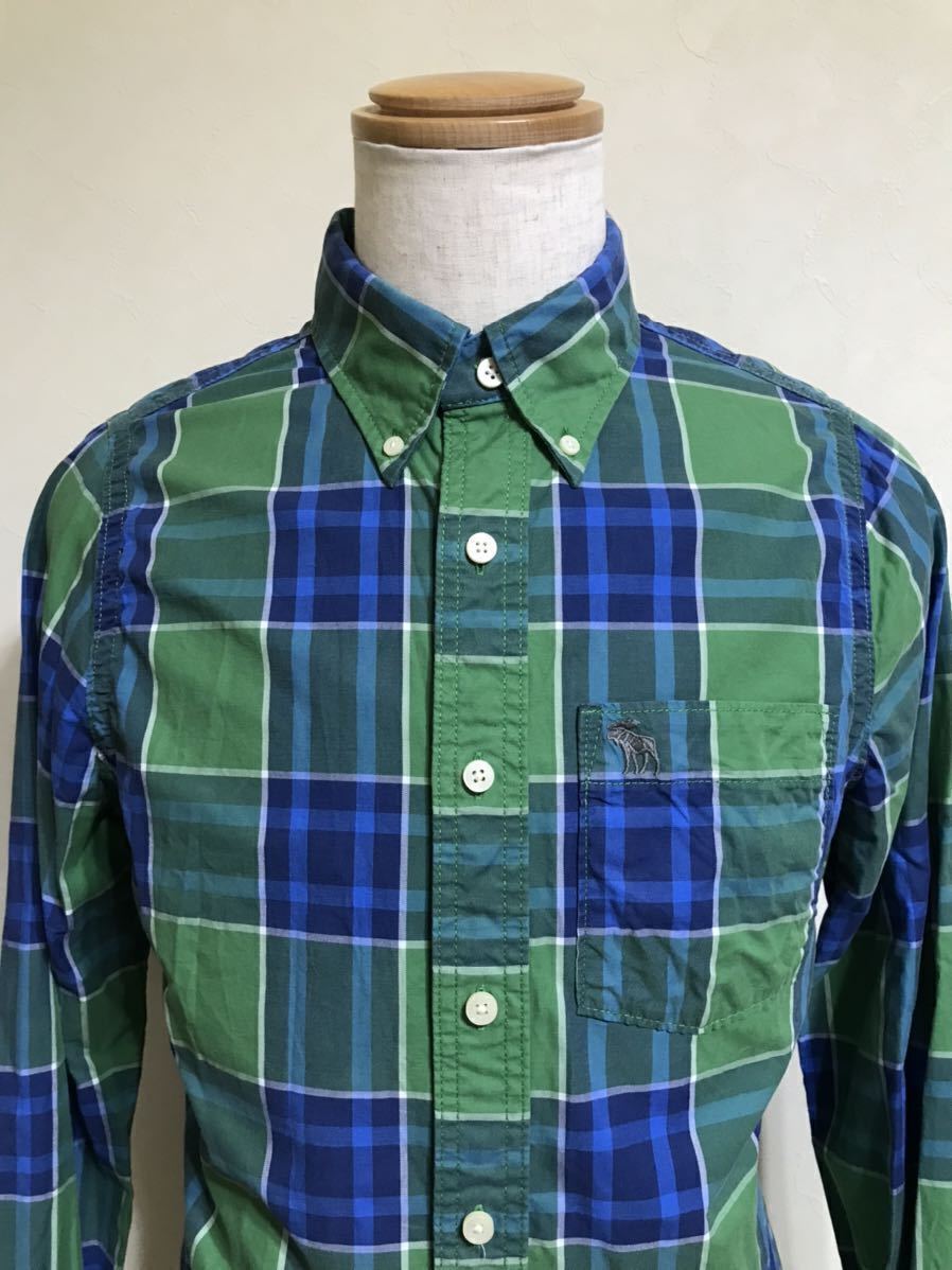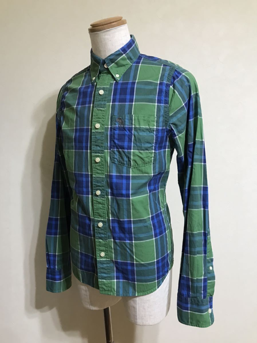 Abercrombie & Fitch アバクロンビー&フィッチ タータンチェック柄 ボタンダウン シャツ トップス サイズS 長袖 グリーン ブルー