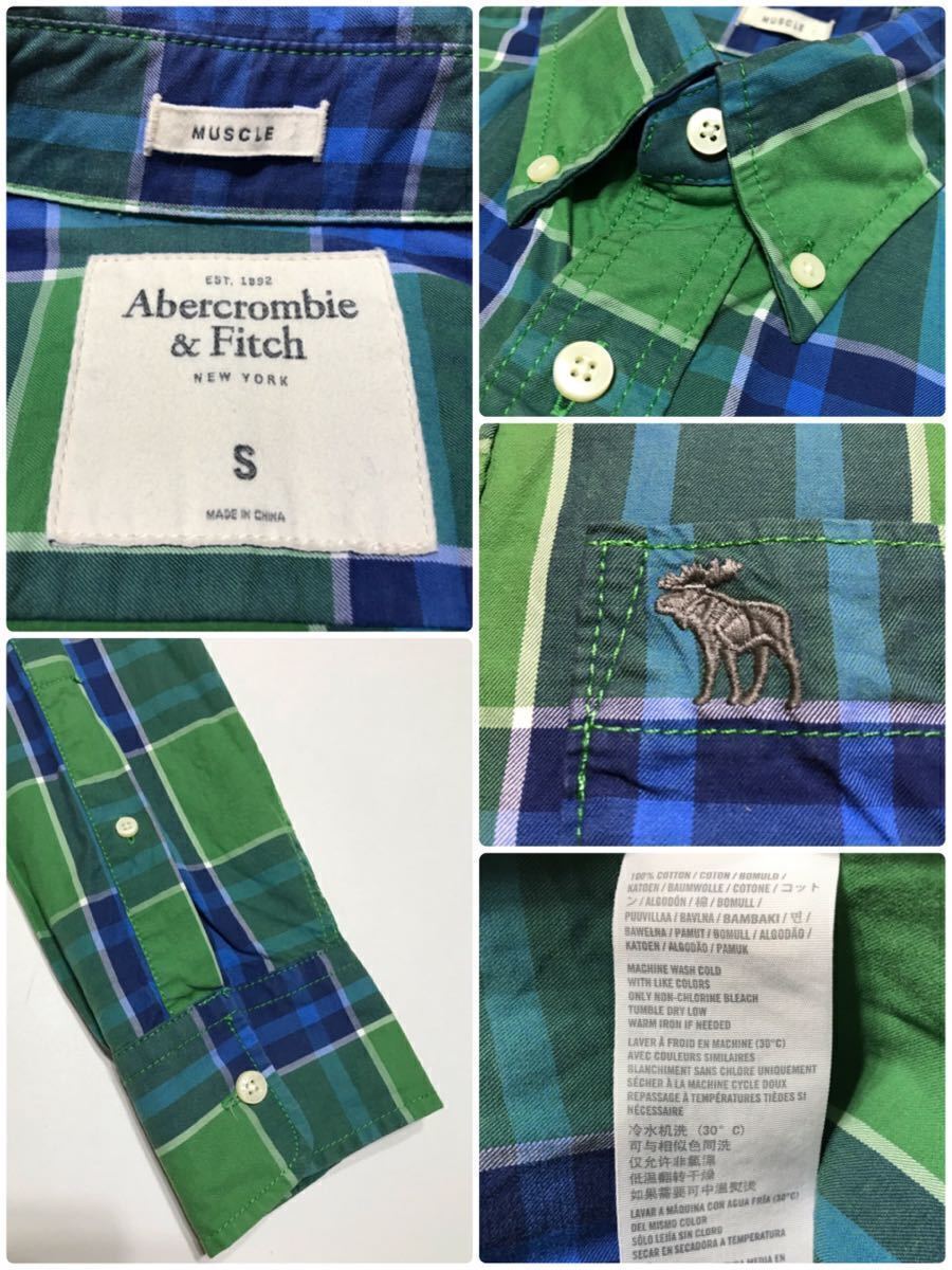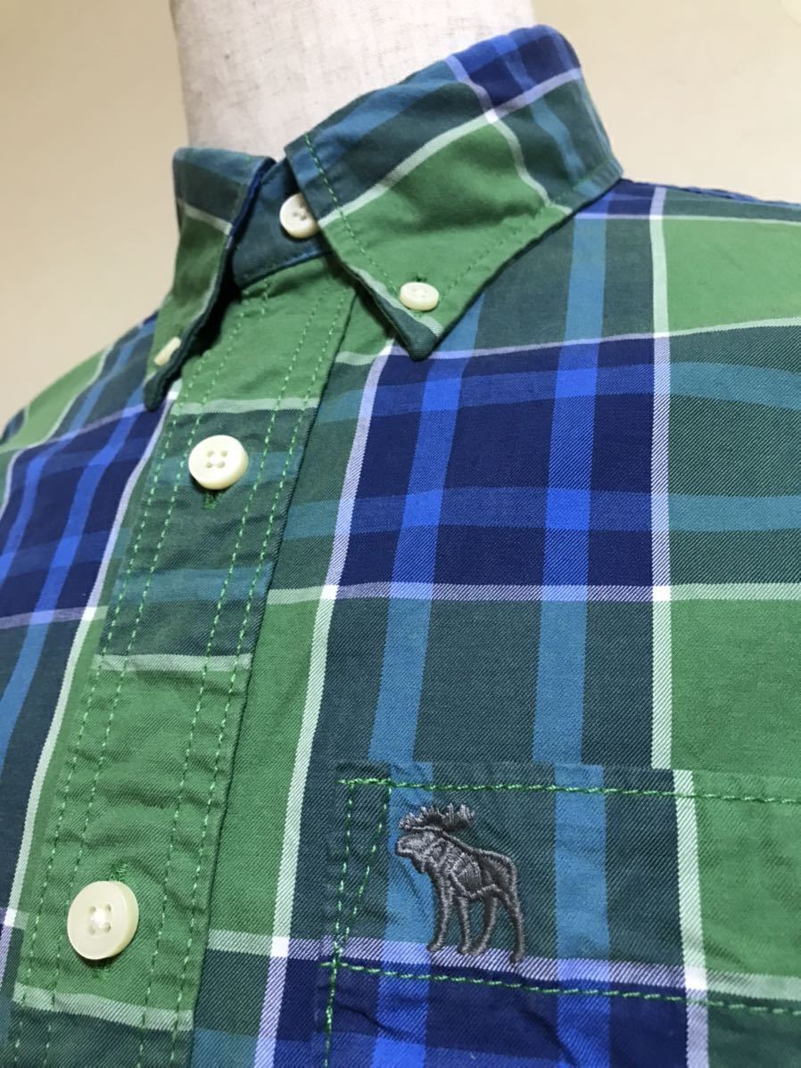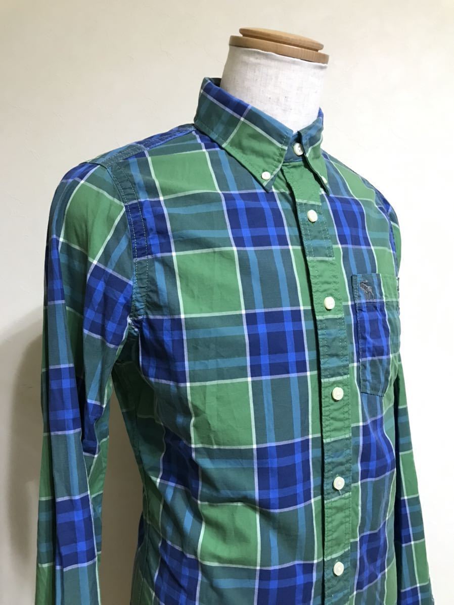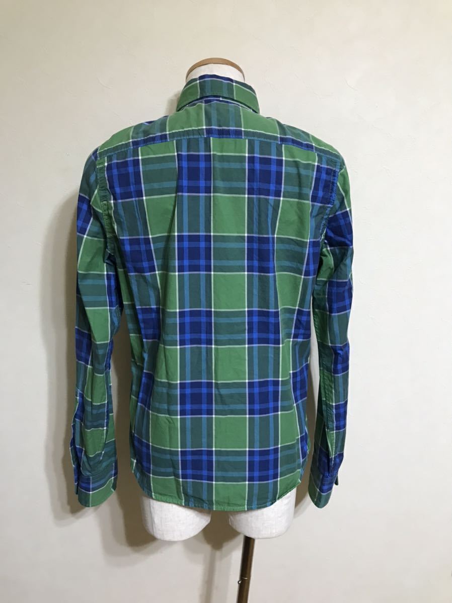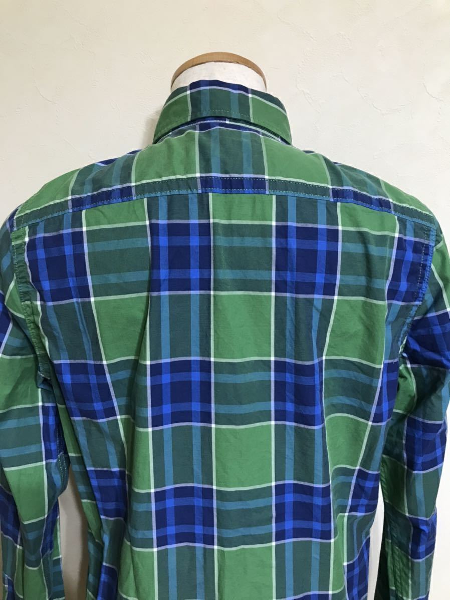 Abercrombie & Fitch アバクロンビー&フィッチ タータンチェック柄 ボタンダウン シャツ トップス サイズS 長袖 グリーン ブルー