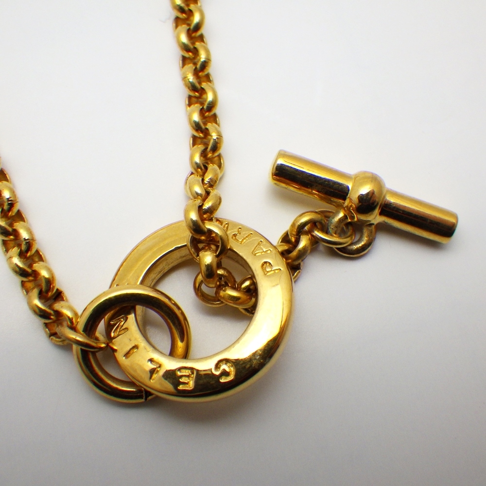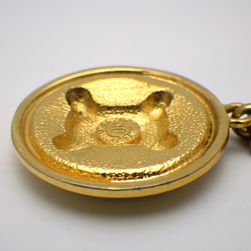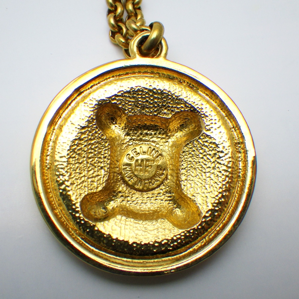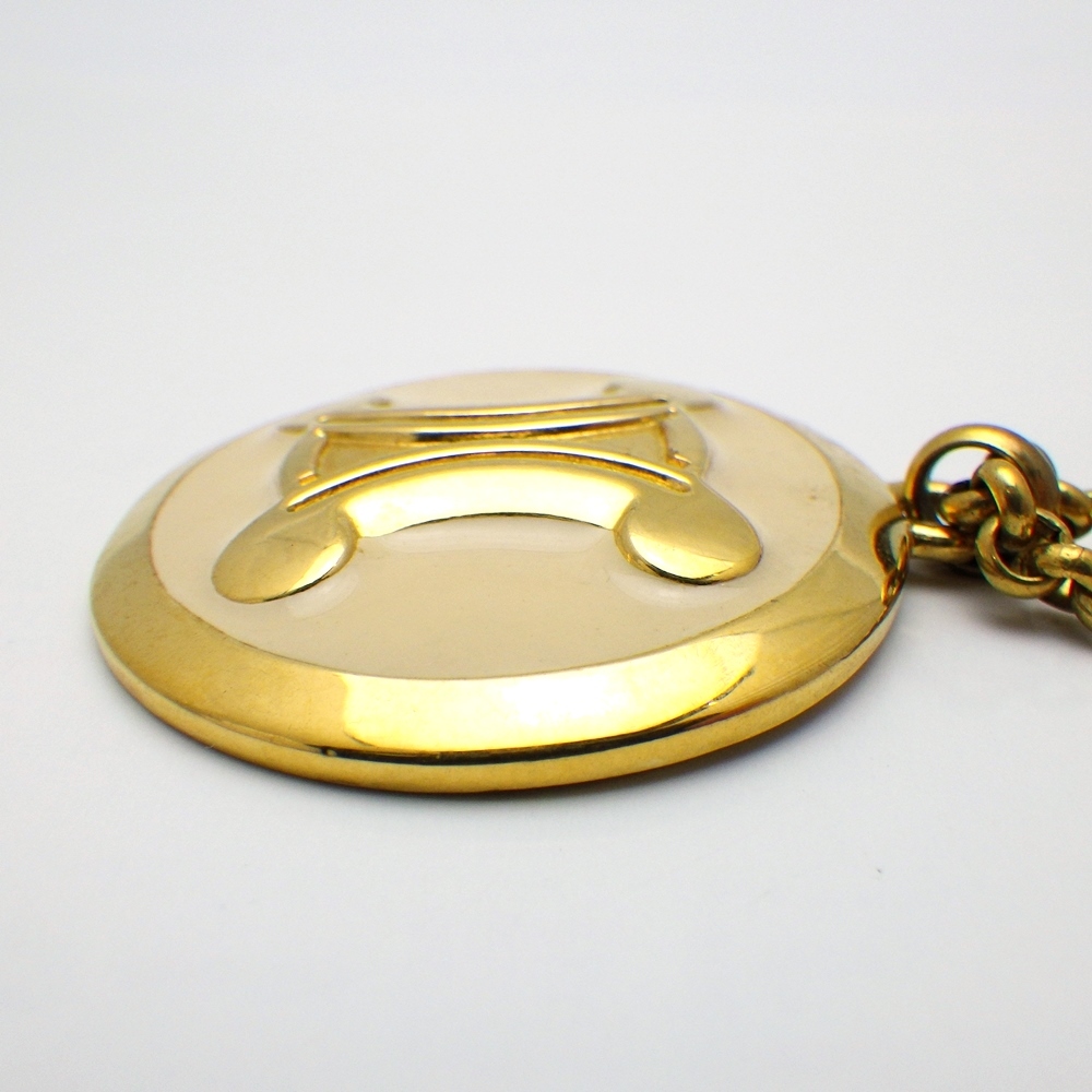 A25-2537 CELINE セリーヌ ネックレス マカダム トリオンフ ラウンド ゴールド×アイボリー エナメル ロング 大ぶり ヴィンテージ