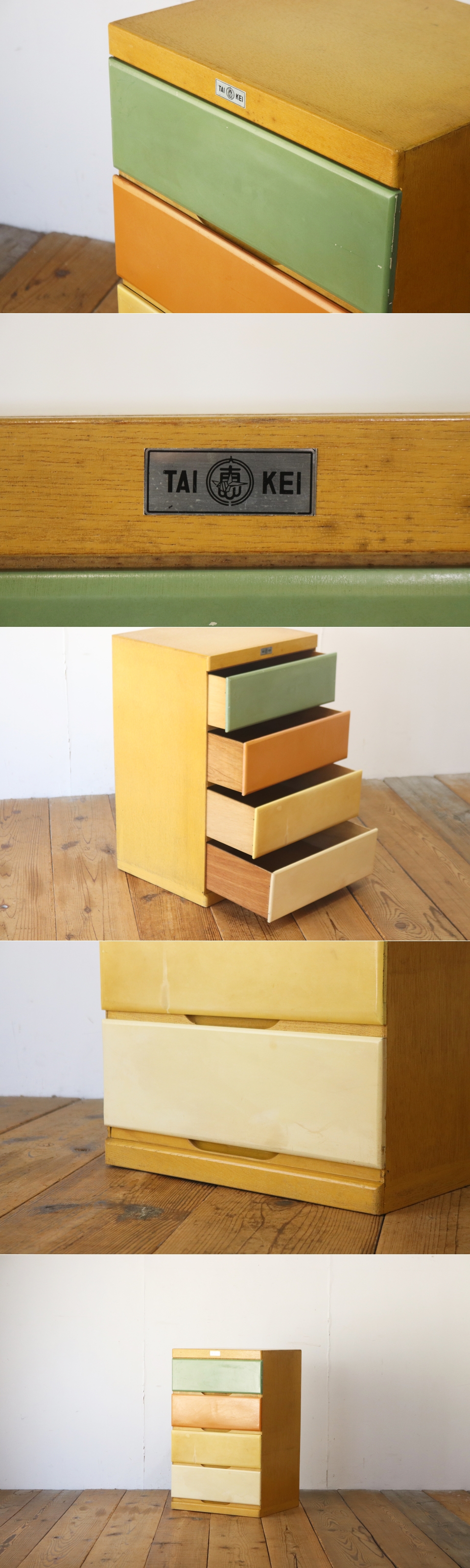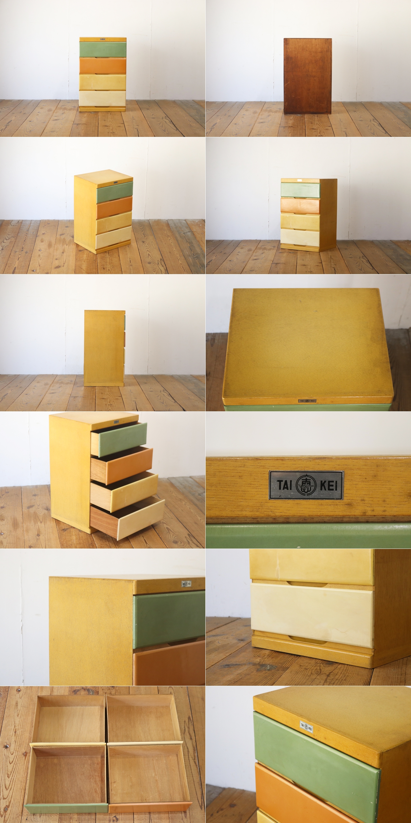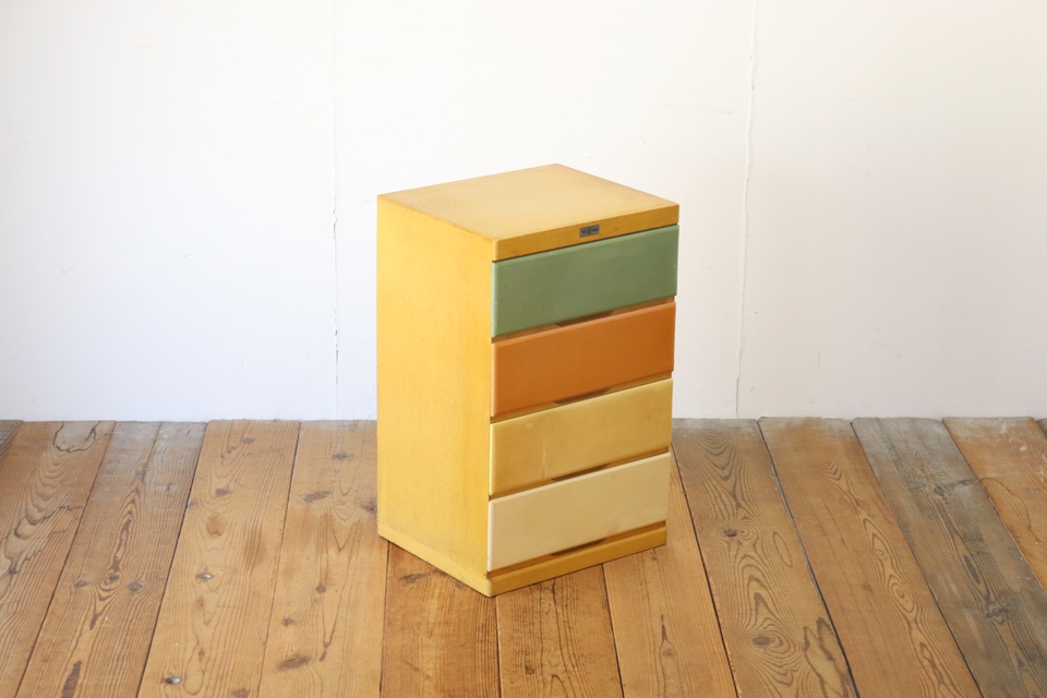 レトロ ベビーチェスト 箪笥 タンス 衣料 収納 引き出し 抽斗 4杯 木製 カラフル ポップ ヴィンテージ/昭和アンティーク北欧/PKT25143