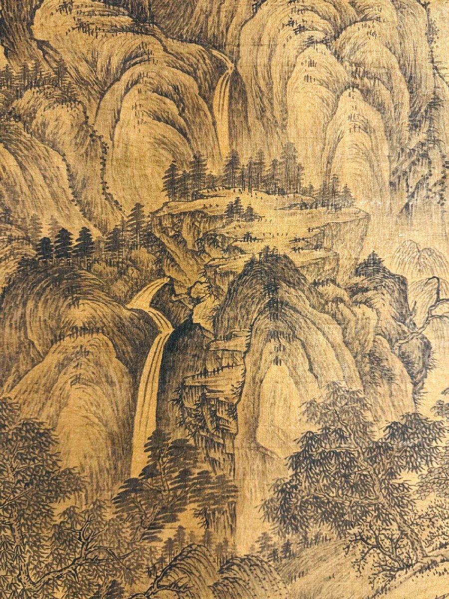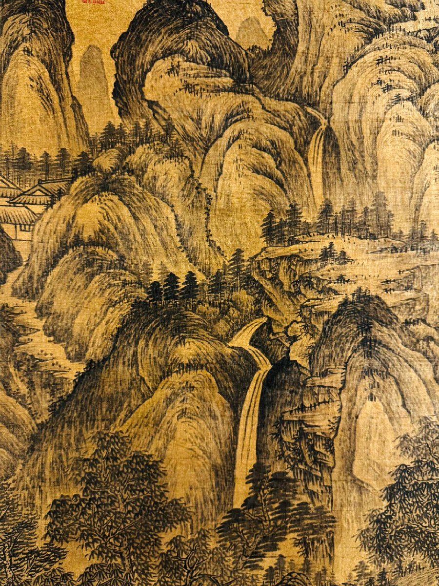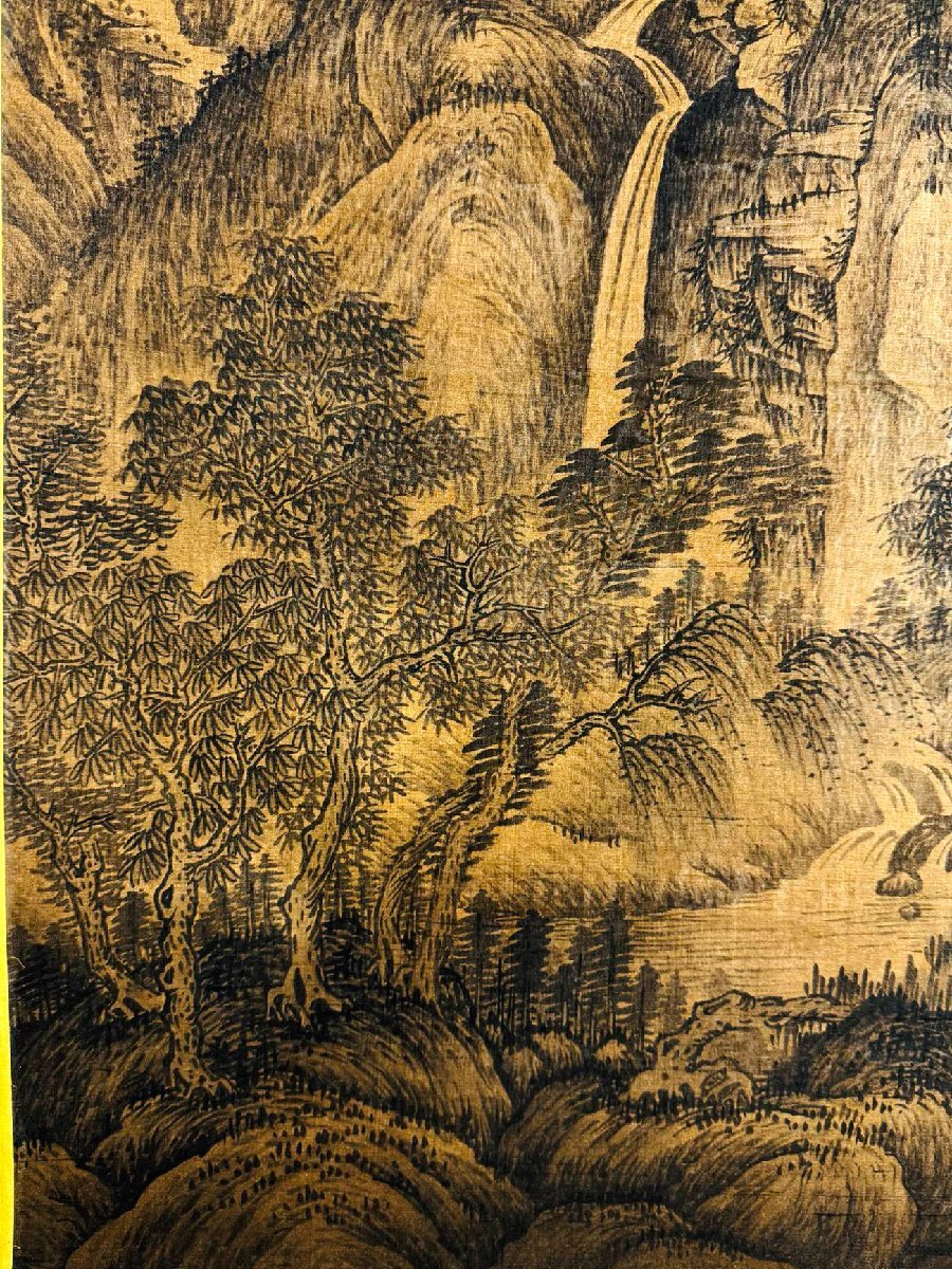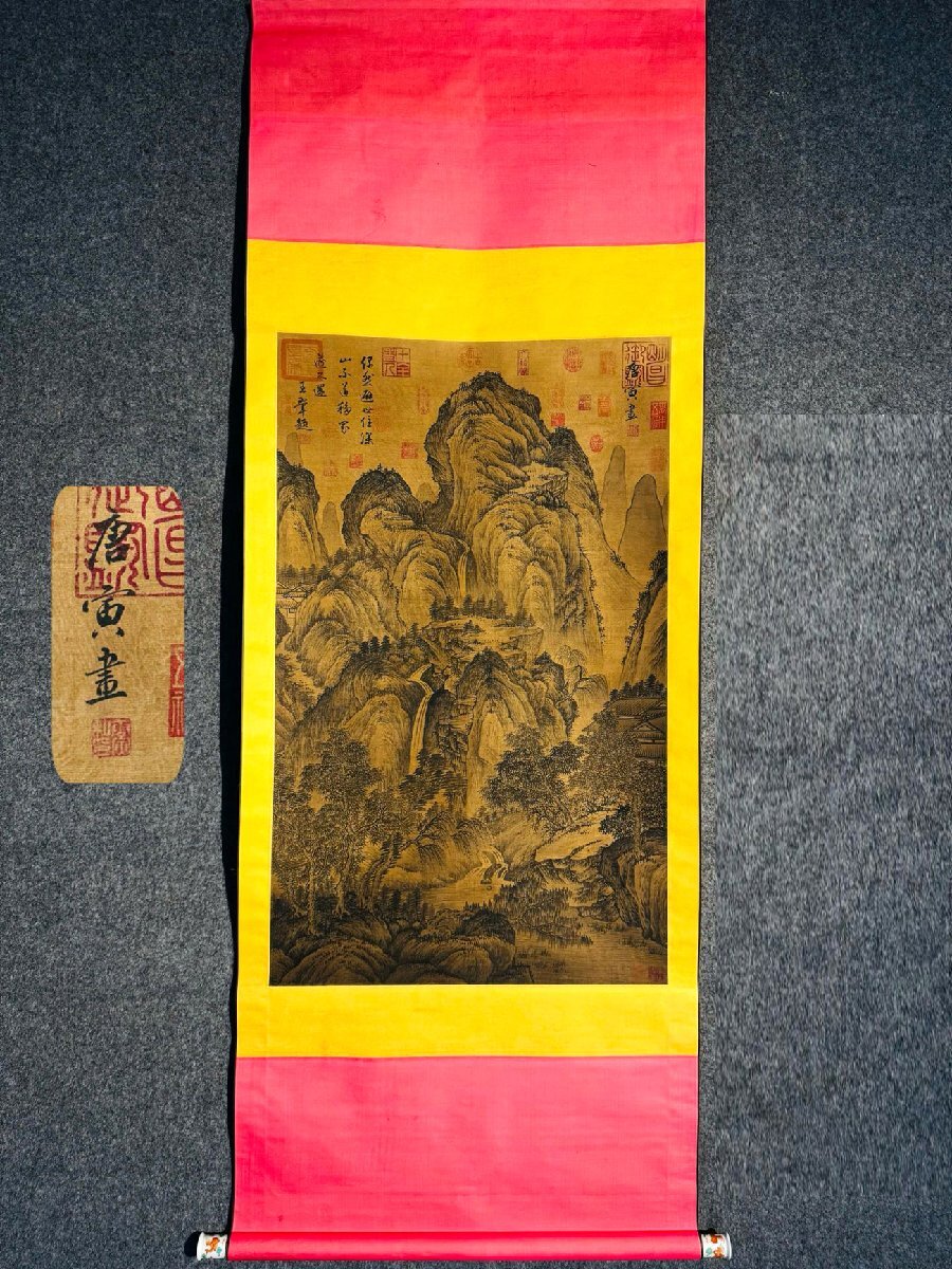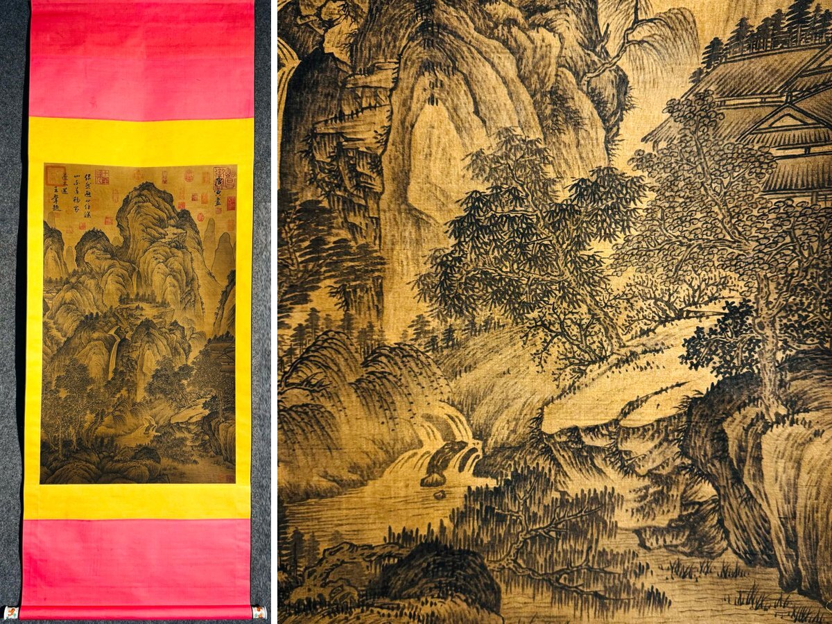 【安】中国明時代画家「唐寅書」絹本「水墨山水図」掛軸 中国画 墨寶妙品 中国書道 古美術 327 サイズ(約寸) |